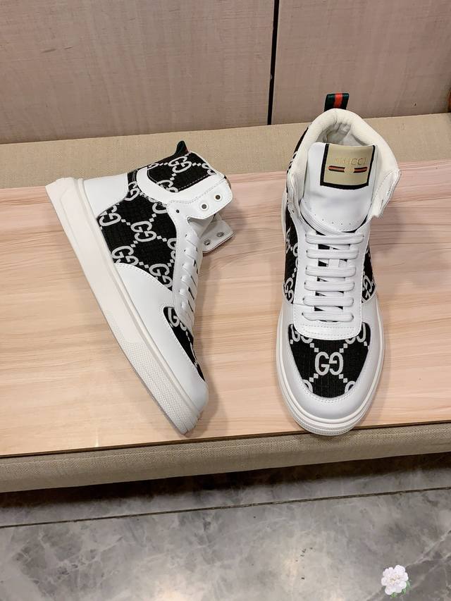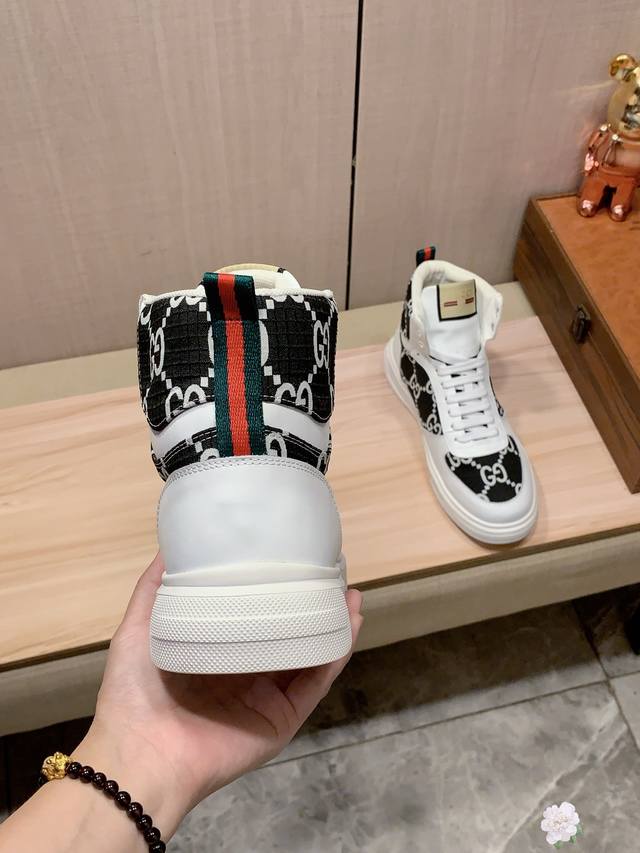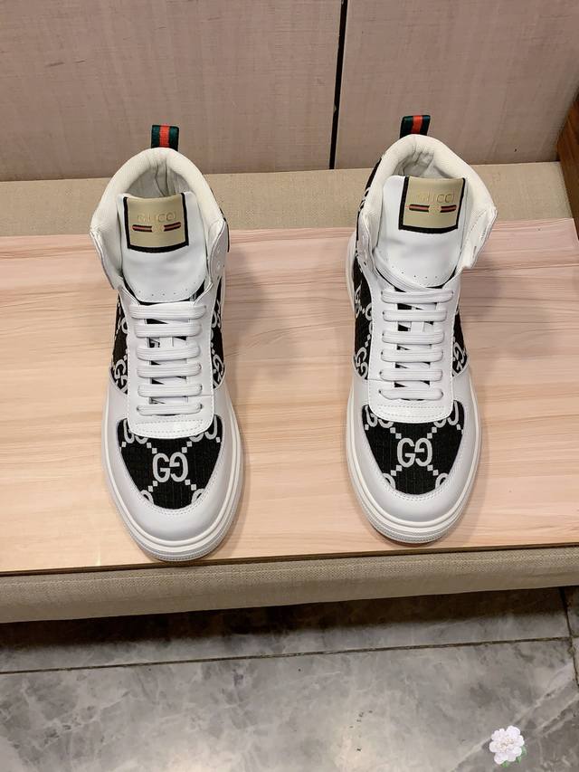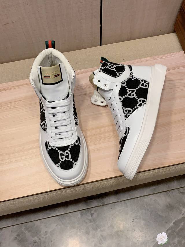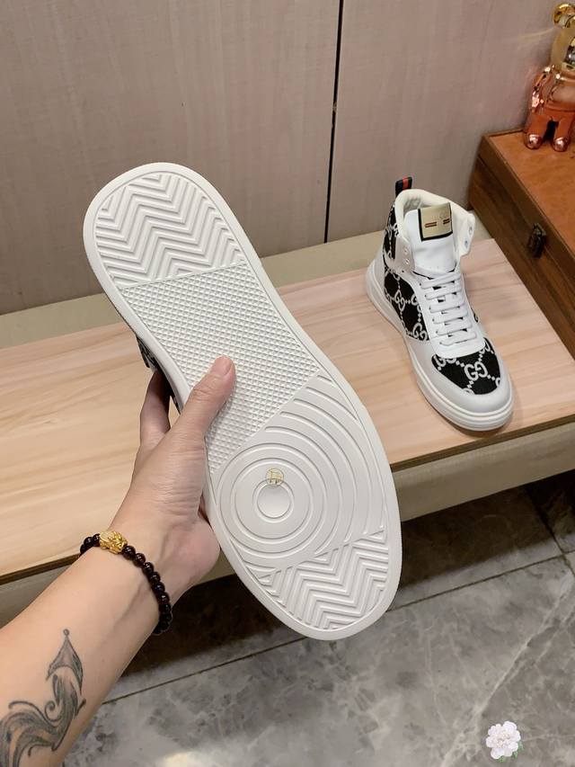 新款: 厂价 古奇Gucci* 最新爆款休闲鞋,顶端品牌 奢侈~代购,顶级~质量。 鞋面選用进口透气牛皮搭配布料材质透气羊皮垫脚 精细做工。原版个性时尚柔软橡膠