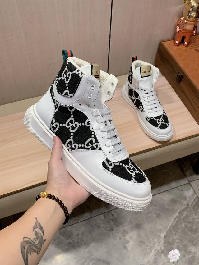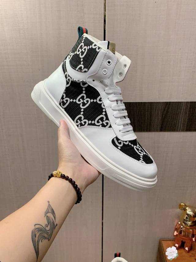 新款: 厂价 古奇Gucci* 最新爆款休闲鞋,顶端品牌 奢侈~代购,顶级~质量。 鞋面選用进口透气牛皮搭配布料材质透气羊皮垫脚 精细做工。原版个性时尚柔软橡膠耐磨防滑大底,上脚轻巧舒适,实物拍摄實物更好看,111:码: 38-44,3色入选