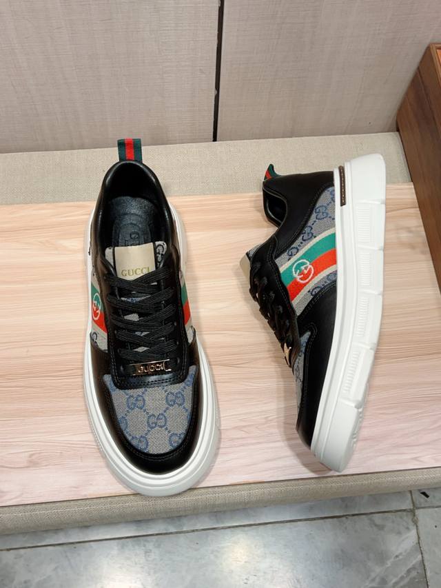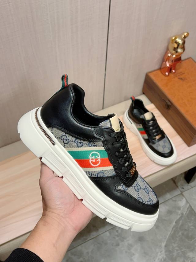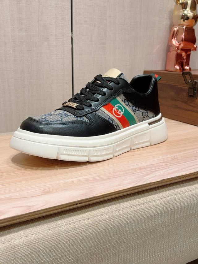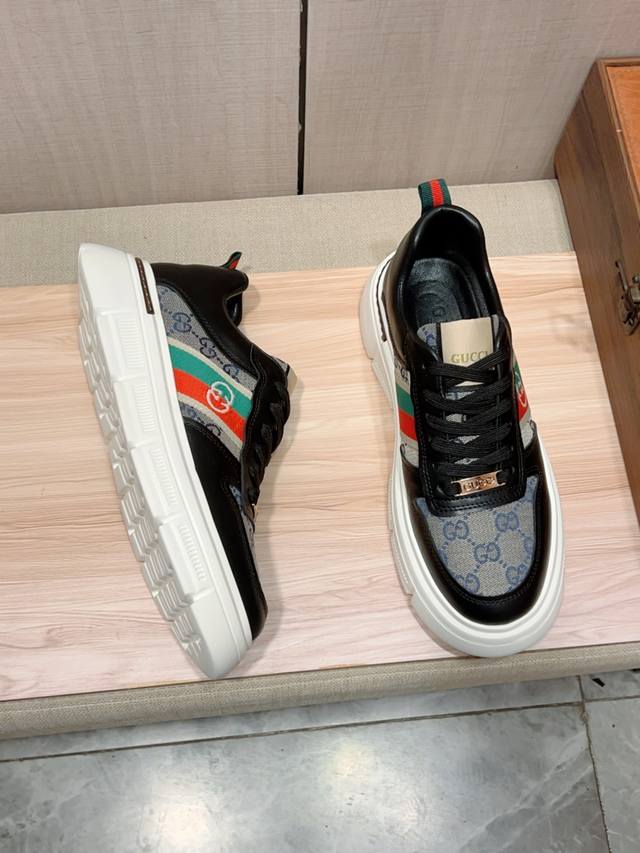 / 新款: 厂价 古奇Gucci* 最新爆款休闲鞋,顶端品牌 奢侈~代购,顶级~质量。 鞋面選用进口透气牛皮搭配布材质透气羊皮垫脚 精细做工。原版个性时尚柔软橡膠耐