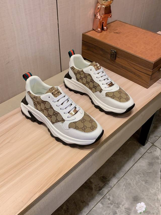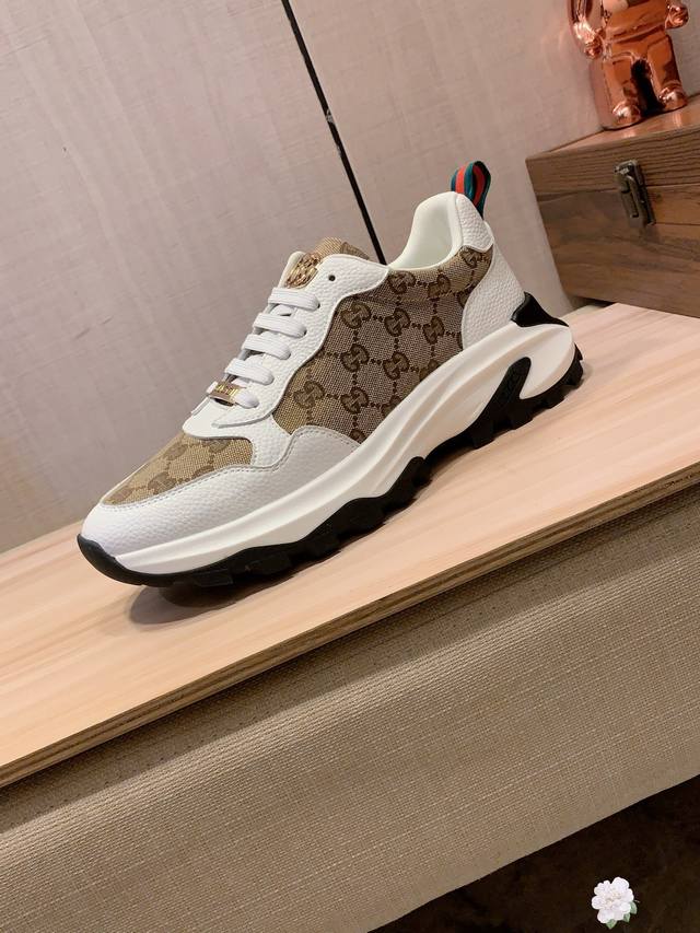 / 新款: 厂价 古奇Gucci* 最新爆款休闲鞋,顶端品牌 奢侈~代购,顶级~质量。 鞋面選用进口透气牛皮搭配材质透气羊皮垫脚 精细做工。原版个性时尚柔软橡膠耐磨