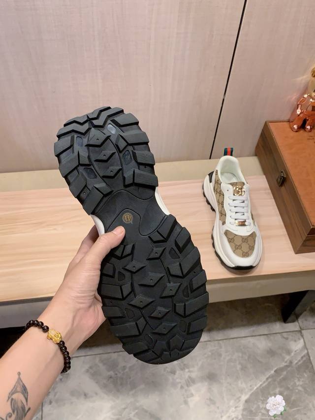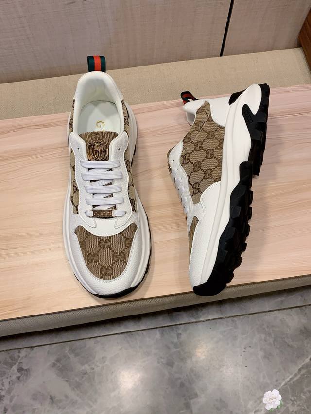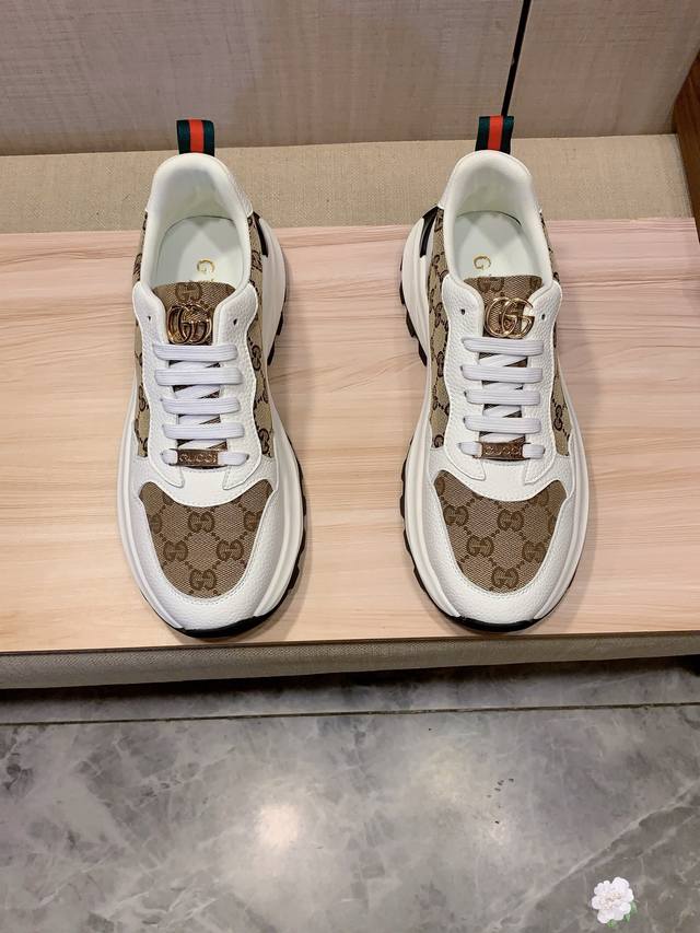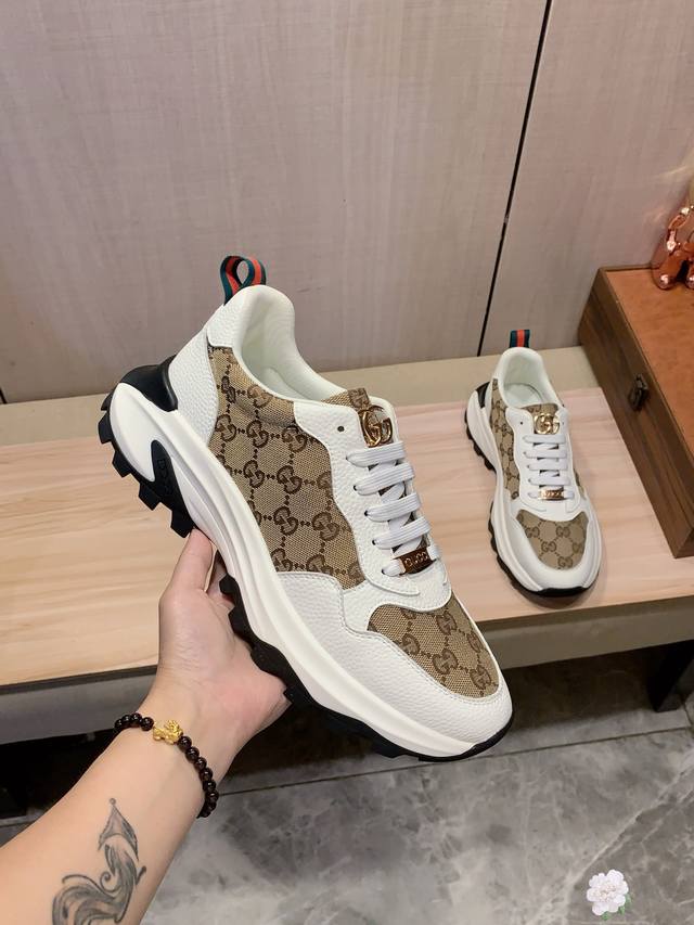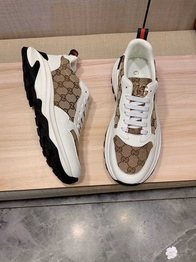 新款: 厂价 古奇Gucci* 最新爆款休闲鞋,顶端品牌 奢侈~代购,顶级~质量。 鞋面選用进口透气牛皮搭配材质透气羊皮垫脚 精细做工。原版个性时尚柔软橡膠耐磨