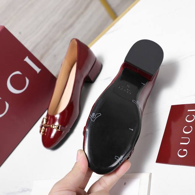 最高版本 2025 新款古奇Gucc马衔扣浅口单鞋平跟圆头女鞋 顶级版本、欢迎比对. 原版1:1复刻 注意请认准咱家正品保证 制作Gucci创作总监推出优雅露跟浅口鞋,匠心,颇具辨识感的品牌元素金色马衔扣为鞋履中央增添亮眼点缀。圆头和低跟相辅相成,造就舒适贴合的版型设计 鞋面:进口牛漆皮 内里 垫脚:全粒纹高档小羊皮 鞋底:意大利顶级真皮底 跟高:1.5Cm 配码:35-42 41 40 42定做不退换 包装:原版全套红盒包装 跑量价: