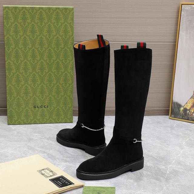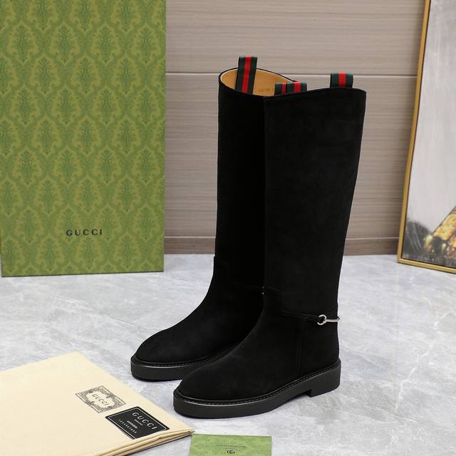 正出常货 后售 奇古 Gucci 秋冬修长型造马衔马扣术靴裸 走秀切款西尔靴顶级购代进口光丝短绒靴工重艺所有制整作做个工与原一版致! 这款靴甄子选进口丝光绒制皮