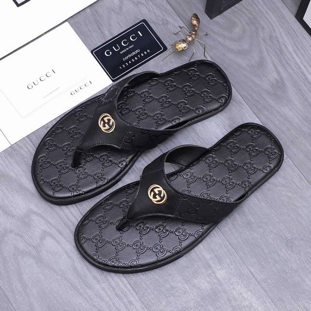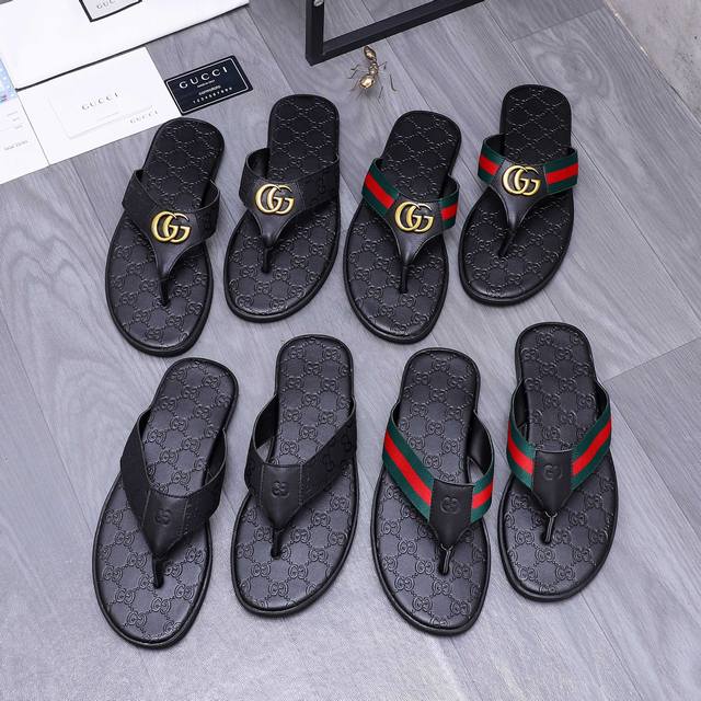 调工厂P价 男装男鞋 运动原单商品商标:Gucci 古驰 人字拖鞋 正码码数: 38-45 46定做不退换 商品材料:精选牛皮拼接织带鞋面 脚背超纤里 橡胶大底
