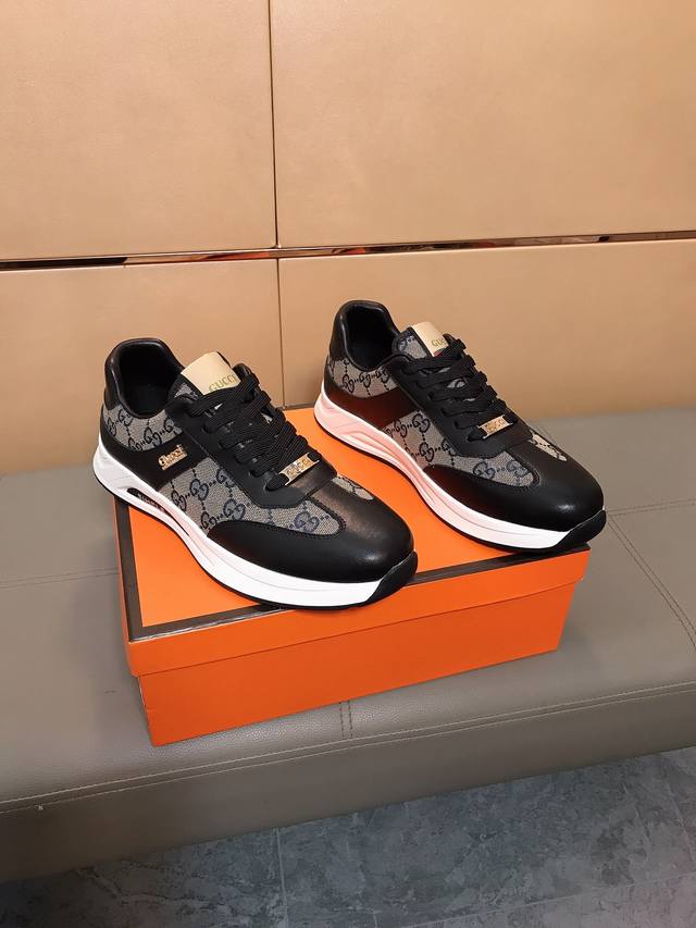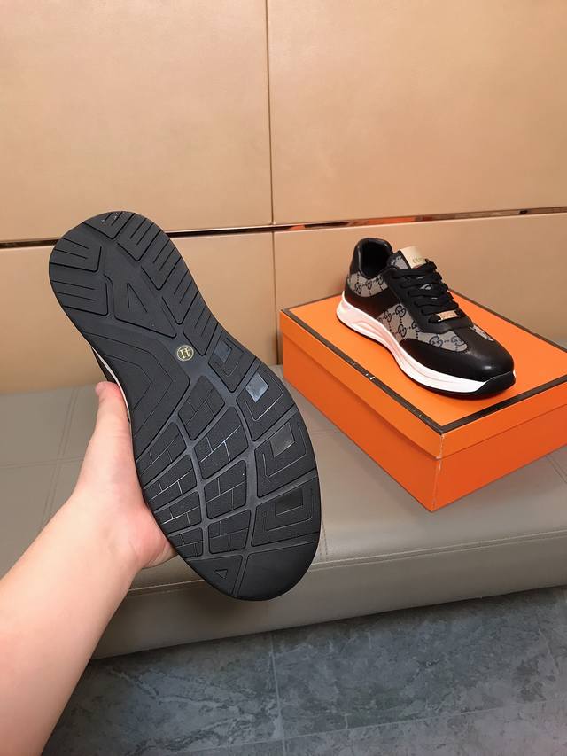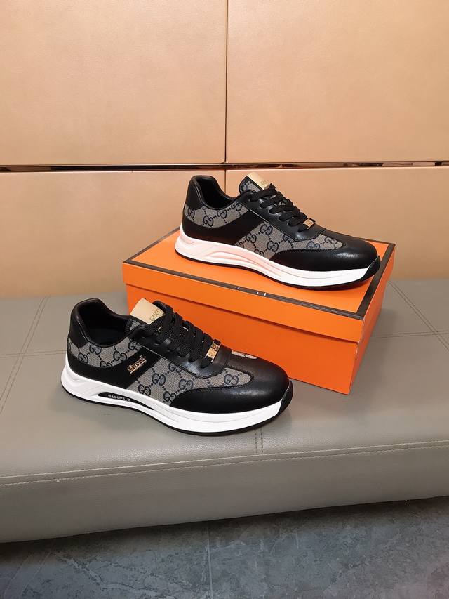 调工厂P价 男装男鞋 运动原单 古奇Gucci 最新款休闲时尚男鞋,爆款版型简洁大气,潮男专属,鞋面选用牛皮+品牌印花,内里采用羊皮内里,柔软舒适大底,3色可选,38-44。