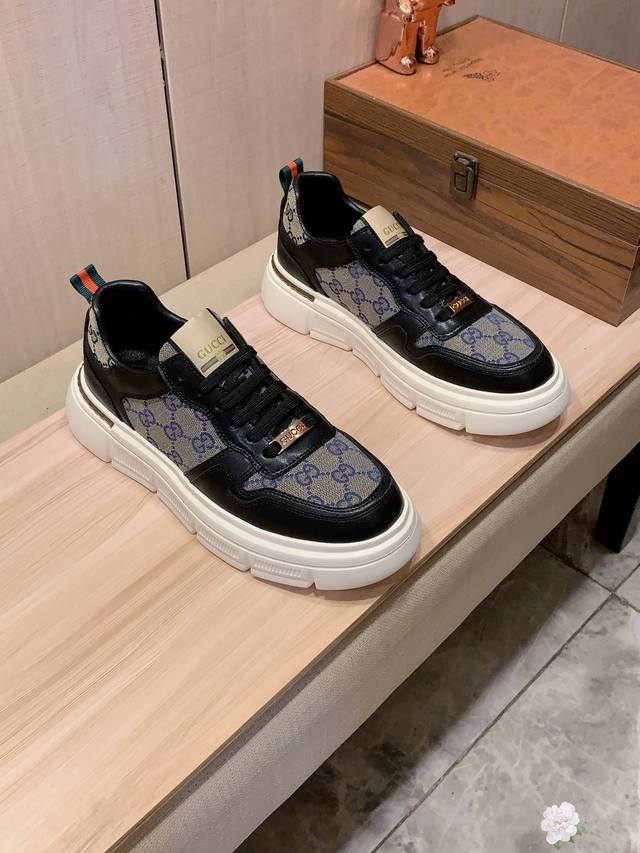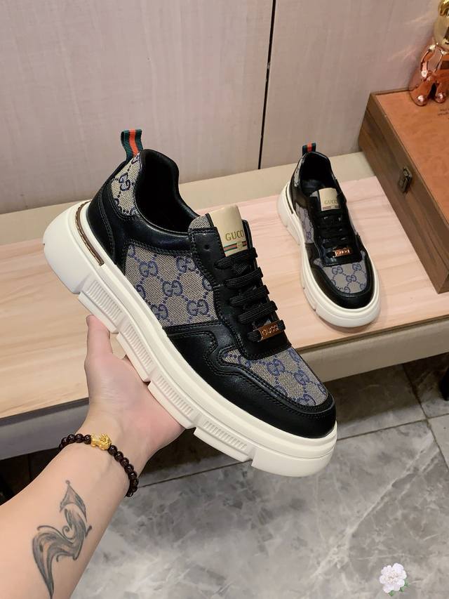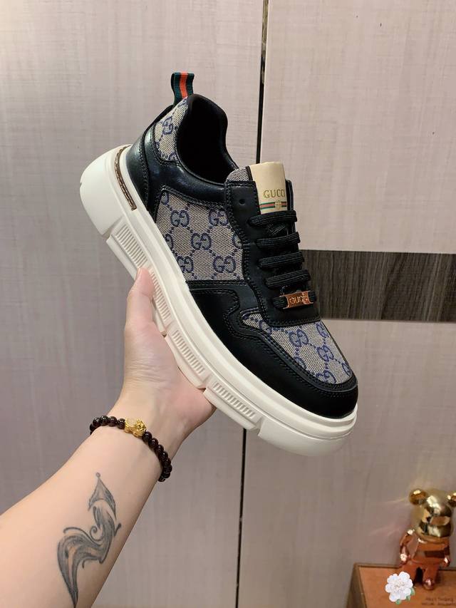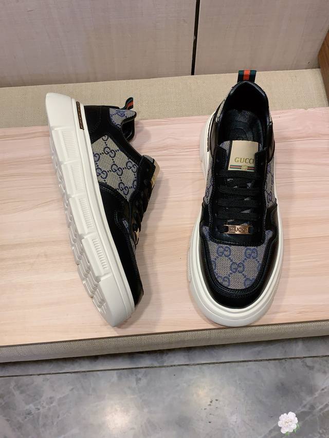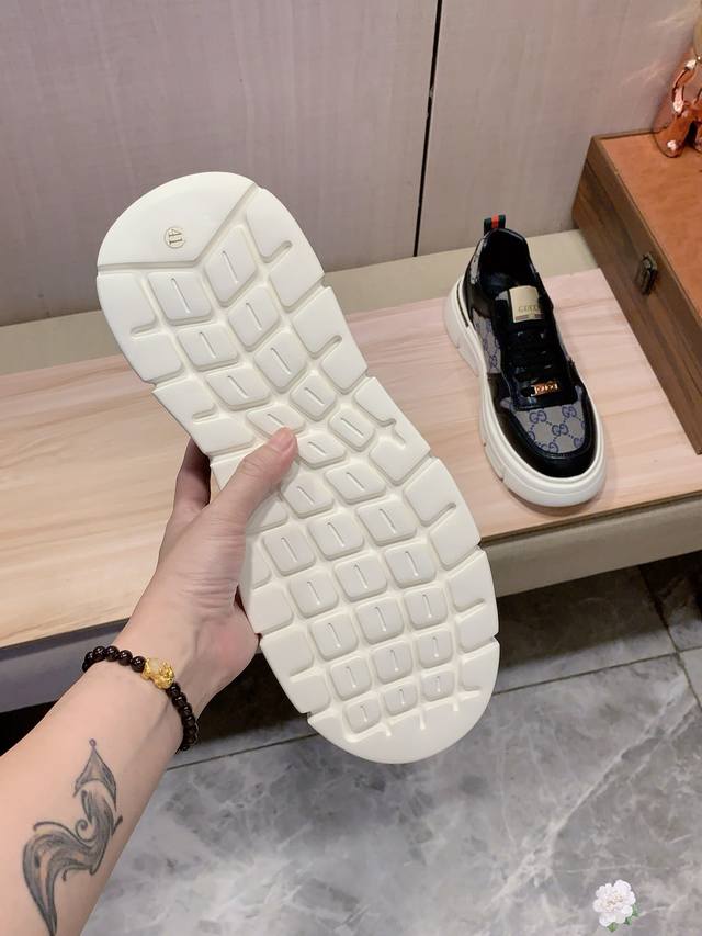 调工厂P价 男装男鞋 运动原单 古奇Gucci* 最新爆款休闲鞋,顶端品牌 奢侈~代购,顶级~质量。 鞋面選用进口透气牛皮搭配材质透气羊皮垫脚 精细做工。原版个性时尚柔软橡膠耐磨防滑大底,上脚轻巧舒适,实物拍摄實物更好看,122:码: 38-44,3色入选