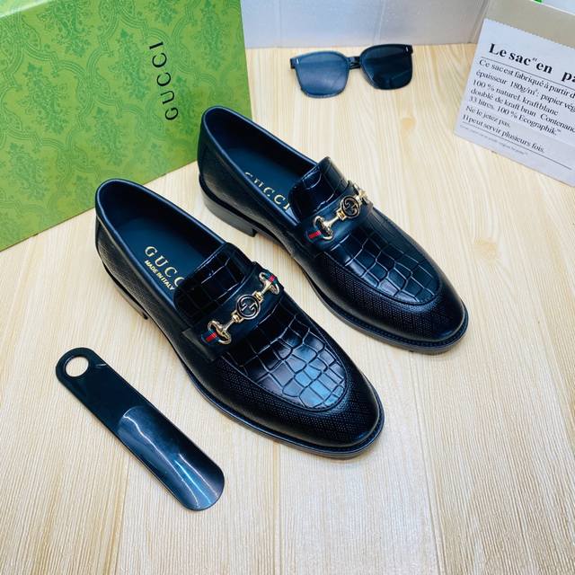 调工厂p价 男装男鞋 运动原单 古驰 Gucci 官网男士商务正装皮鞋更新香港专柜同步新款完全一比一复刻出货专柜品质零差距0外均采用进口牛皮制作+水染皮内里制作,黑色可选!配码 38-44 DDD