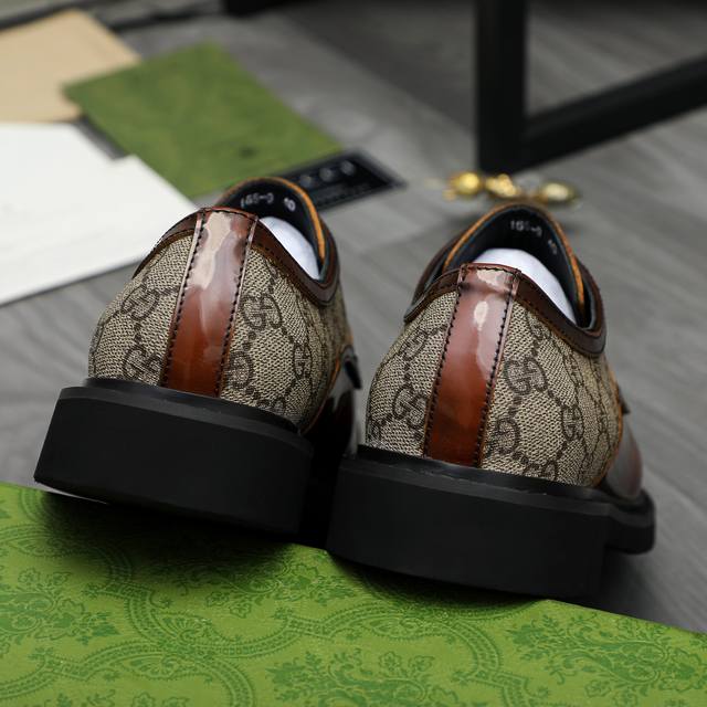 / 调工厂p价 男装男鞋 运动原单 商品商标:Gucci 古驰 商务休闲皮鞋 正码码数: 38-44 商品材料:精选珠光牛皮拼接鞋面 牛皮内里 原版橡胶大底