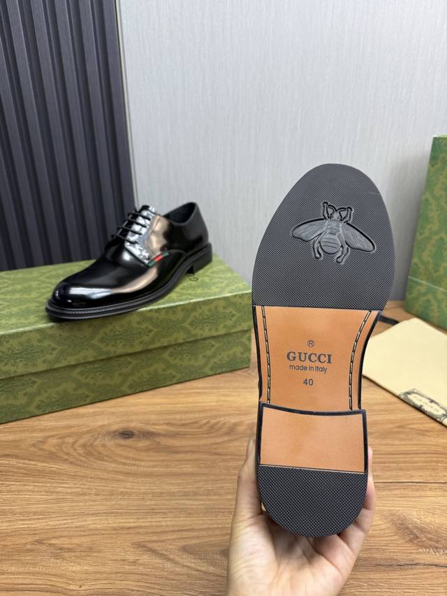 Gucci 古驰 -高端品质 原单正装皮鞋 -鞋面 进口开边珠小牛皮 鞋丹手工串缝马克线 品牌金属扣件装饰 -内里 水染牛皮 -大底...