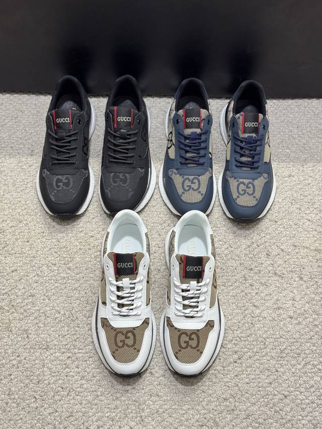 调工厂p价 男装男鞋 运动原单 2025跑量最新升级版古奇采用牛皮+古奇专用材料+透气羊里 橡胶耐磨原版大底...