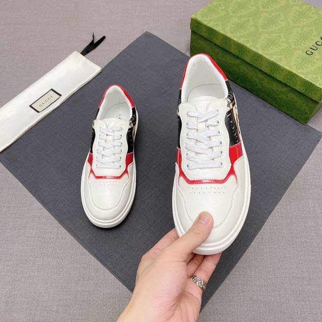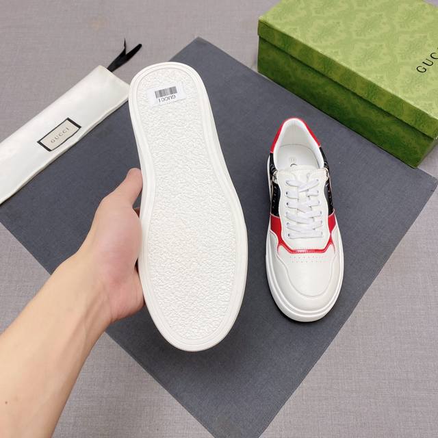 新款: 厂价 古奇Gucci* 最新爆款休闲鞋,顶端品牌奢侈~代购,顶级~质量。鞋面選用进口透气牛皮搭配布料材质透气羊皮垫脚...