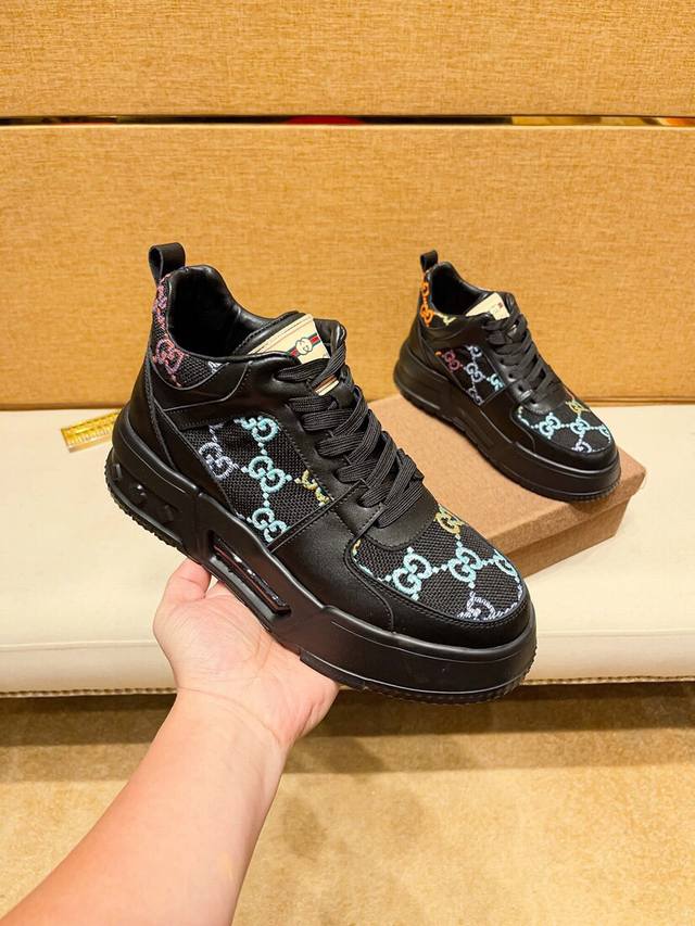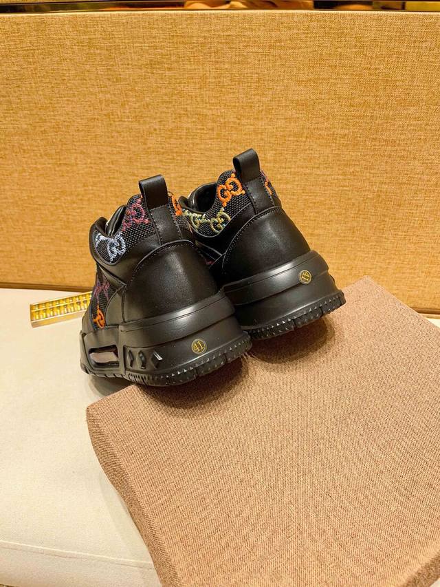 调工厂p价 男装男鞋 运动原单 Gucci 古奇高帮最新款休闲韩版风男鞋,全新秋冬款设计,完美做工,打造装柜品质,鞋面:牛皮面材质,皮内里;柔软舒适,发泡轻大底超轻 耐磨、简约、百搭风时装男鞋,颜色 色可选 码数38--44 DDD