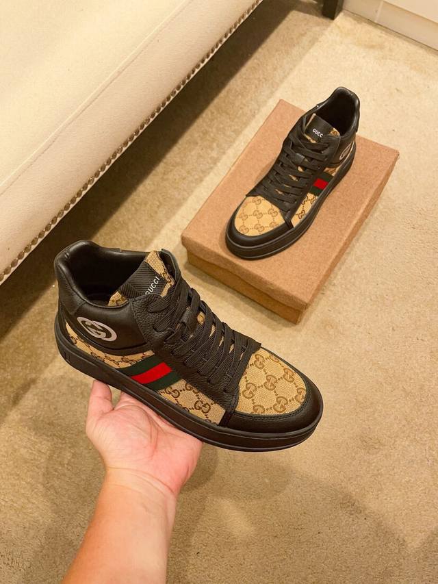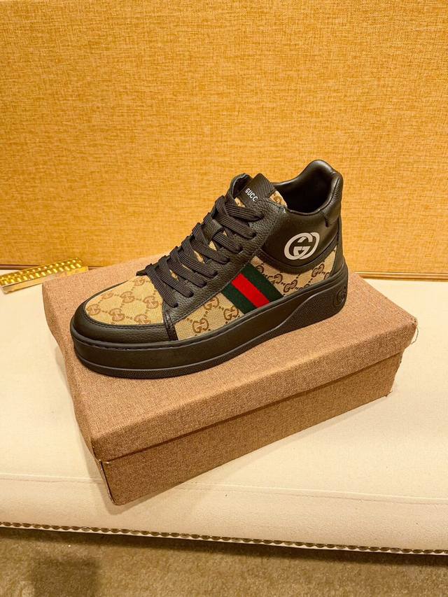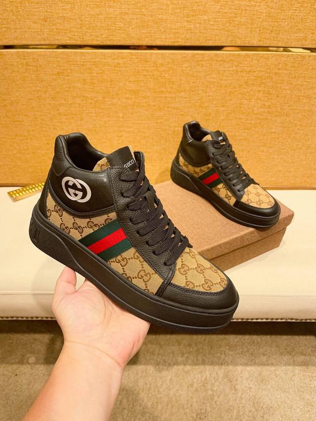 调工厂P价 男装男鞋 运动原单 Gucci 古奇高帮最新款休闲韩版风男鞋,全新秋冬款设计,完美做工,打造装柜品质,鞋面:牛皮面材质,皮内里;柔软舒适,橡胶大底超轻 耐磨、简约、百搭风时装男鞋,颜色 色可选 码数38--44