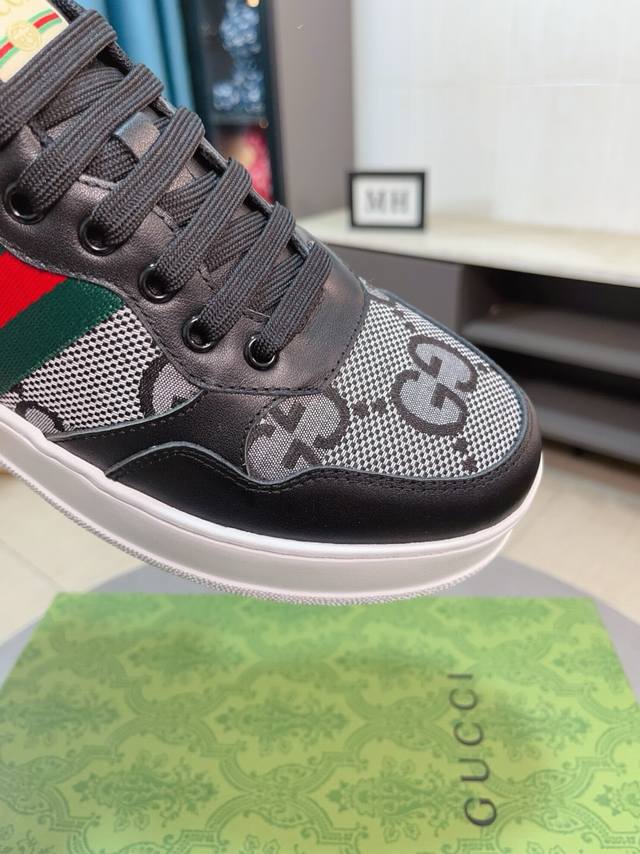 商品商标:Gucci 古驰 男式休闲板鞋 正码码数: 38-44 商品材料:精选牛皮拼接网面 网内里 牛皮鞋垫 橡胶大底
