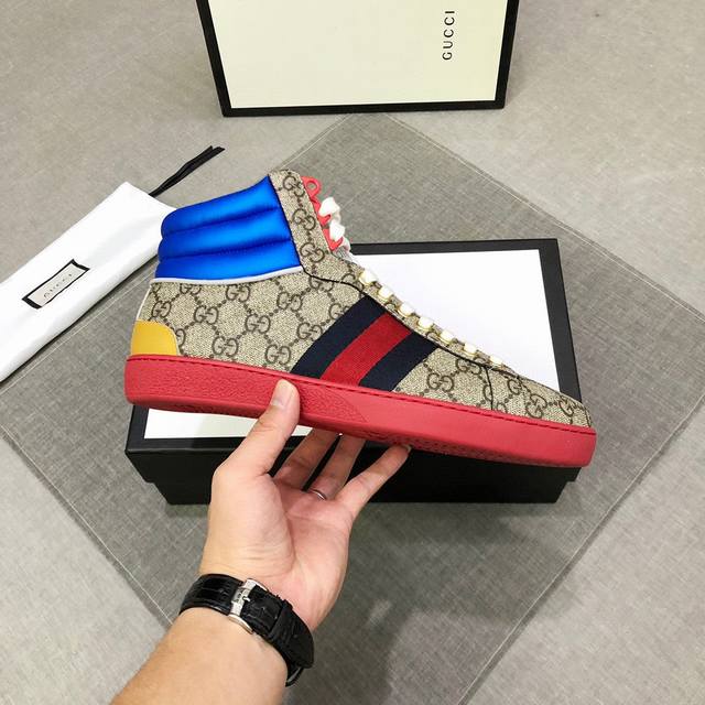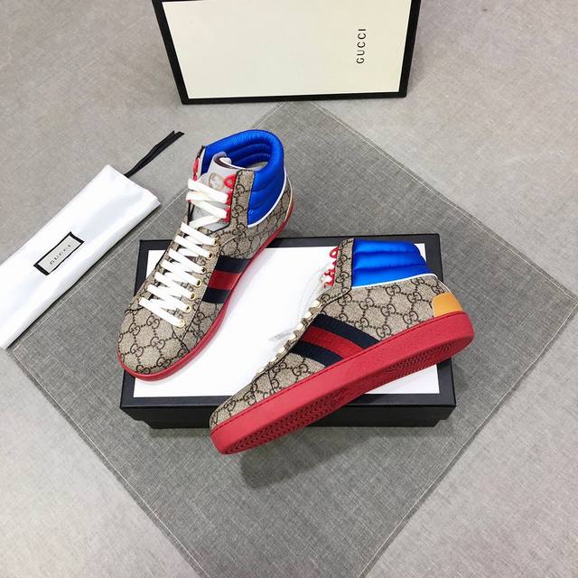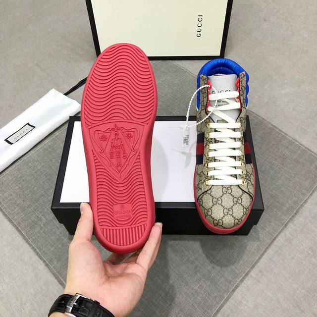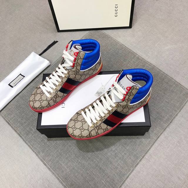 调工厂p价 Gucci 高帮 休闲鞋 专柜同步发售 鞋面采用进口原版材料进口水染小牛皮内里 顶级工艺 品牌Logo大底 上脚感觉超棒 决绝低版本 码数:38-4