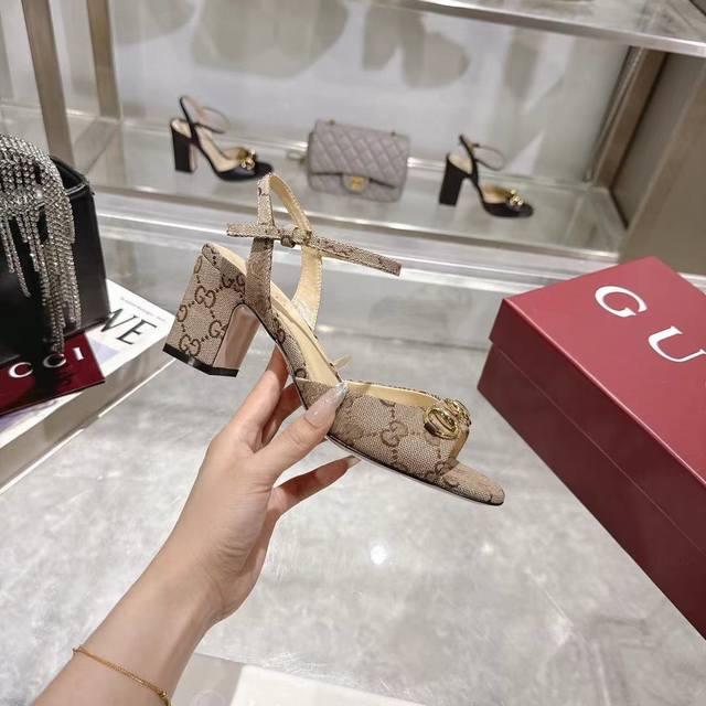出厂价pp 女装女鞋 运动原单新款古琦高跟凉鞋 时尚又高端 上脚舒适跟又稳 夏天必备的经典款凉鞋 面料...