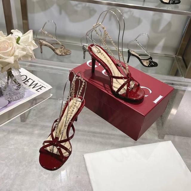 工厂P价 女装女鞋 运动原单 Gucc高端精品 2025春夏新款金属竹节跟后空凉鞋...