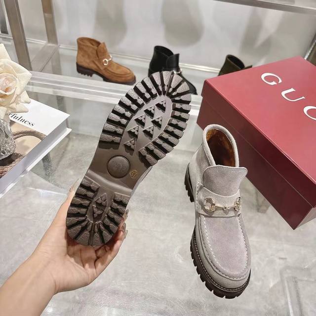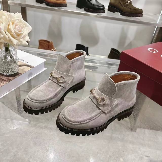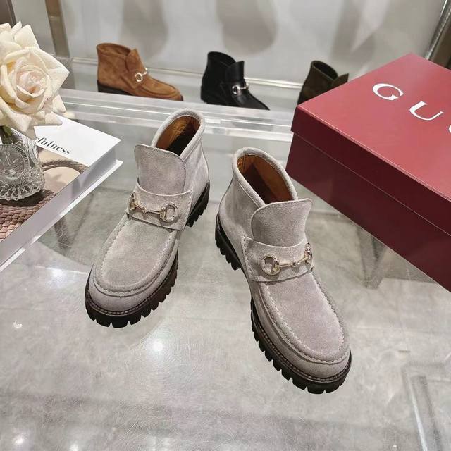 / 长期有货 4寸女靴 Gucci 古奇 时尚大爆款 巧妙运用圆形鞋头等设计时尚风范 面料:进口小牛牛猄皮 内里:垫脚 进口羊皮 原板一比大底生产 码数:35 42