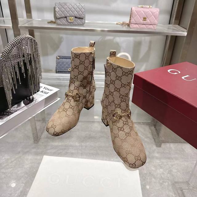 / 长期有货 8寸女靴 Gucci 古奇 时尚大爆款 巧妙运用圆形鞋头等设计时尚风范 面料:进口小牛皮 内里:垫脚 进口羊皮 跟高:5.5 码数:35 42码 备注