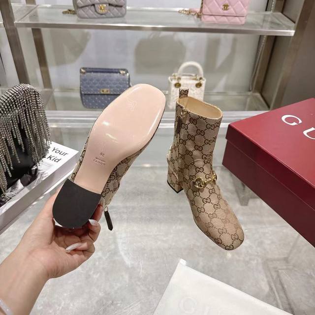 长期有货 8寸女靴 Gucci 古奇 时尚大爆款 巧妙运用圆形鞋头等设计时尚风范 面料:进口小牛皮 内里:垫脚 进口羊皮 跟高:5.5 码数:35 42码 备注