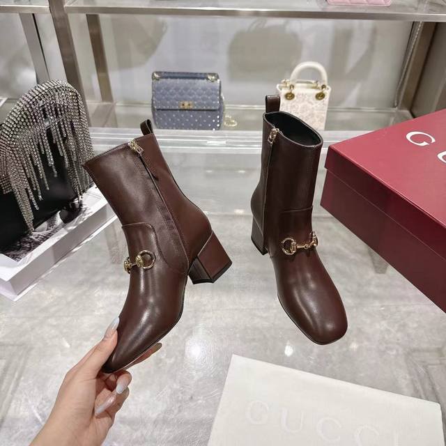 长期有货 8寸女靴 Gucci 古奇 时尚大爆款 巧妙运用圆形鞋头等设计时尚风范 面料:进口小牛皮 内里:垫脚 进口羊皮 跟高:5.5 码数:35 42码 备注