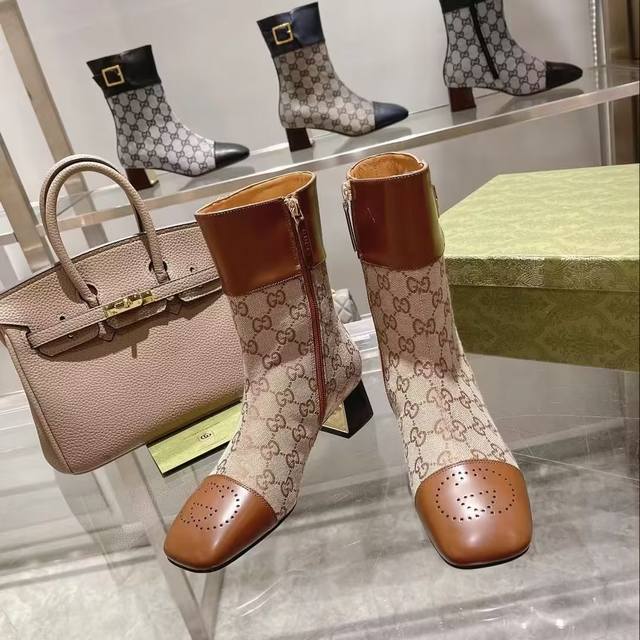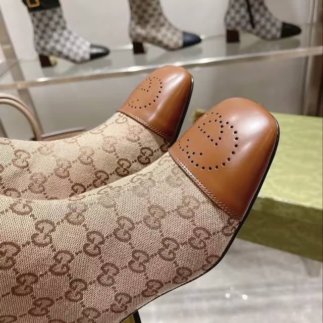 长期有货 Gucci 古奇 时尚大爆款 巧妙运用方形鞋头等设计时尚风范 面料:刺绣拼接粒面牛皮 进口混种羊皮 内里:垫脚 进口羊皮 跟高:5Cm 意大利真皮大底