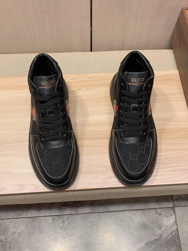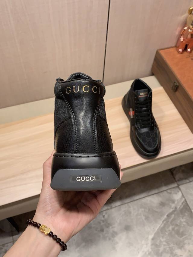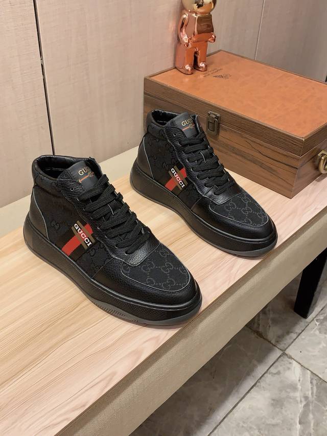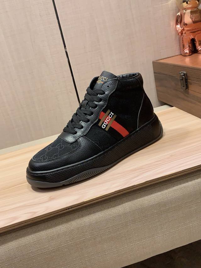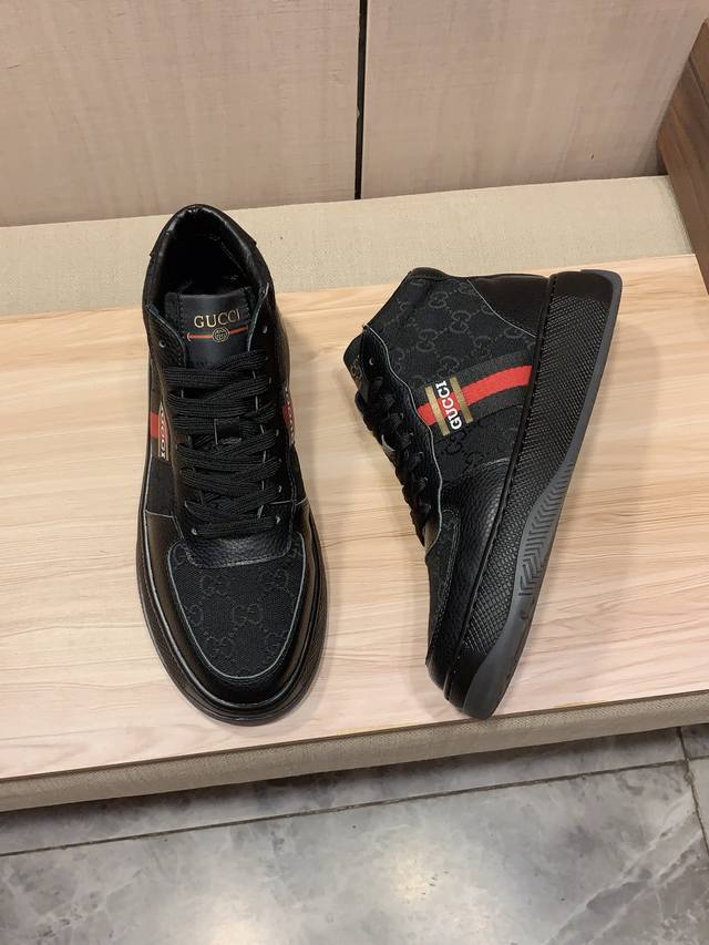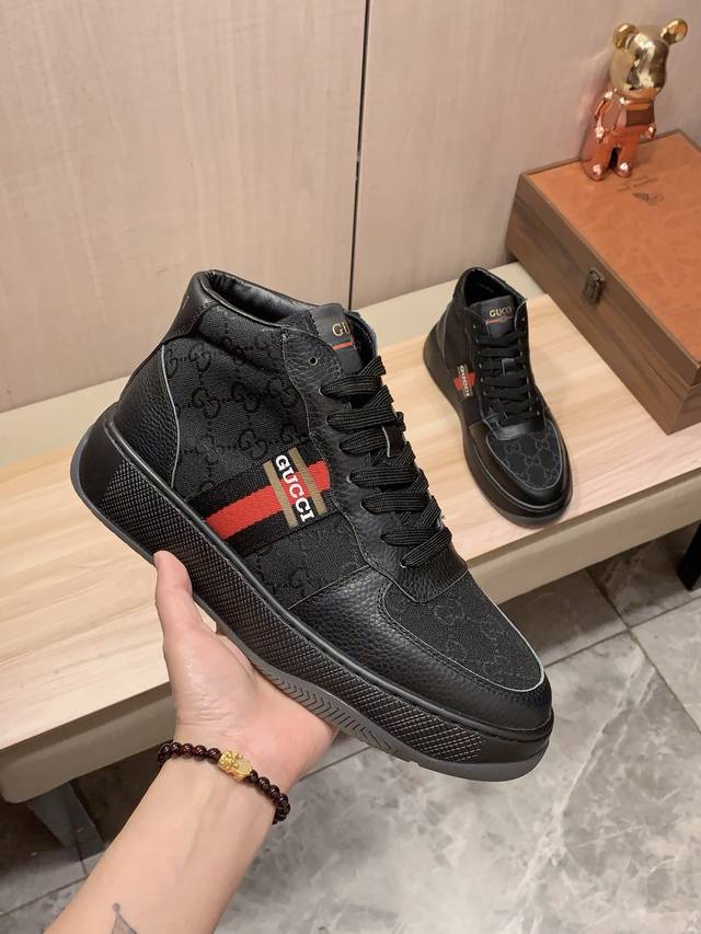高帮新款: 厂价 古奇Gucci* 最新爆款休闲鞋,顶端品牌 奢侈~代购,顶级~质量。 鞋面選用进口透气牛皮搭配弹力布材质透气羊皮垫脚 精细做工。原版个性时尚柔