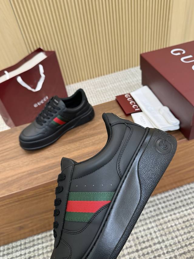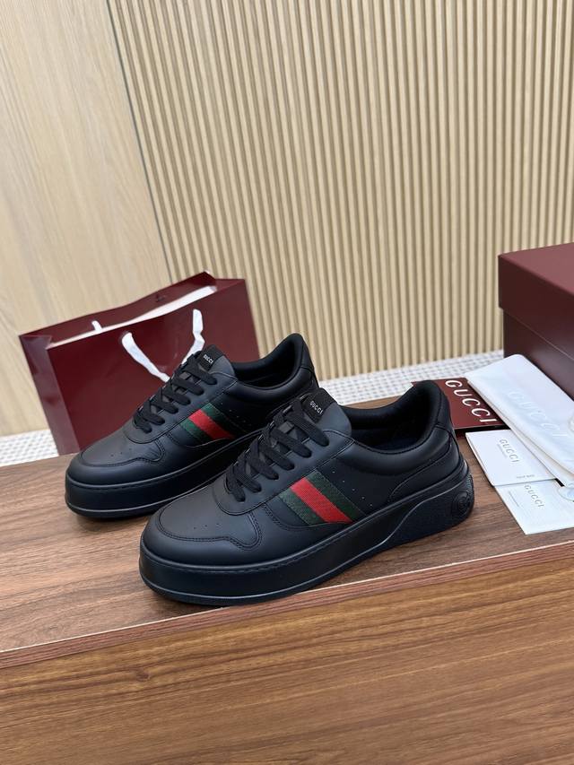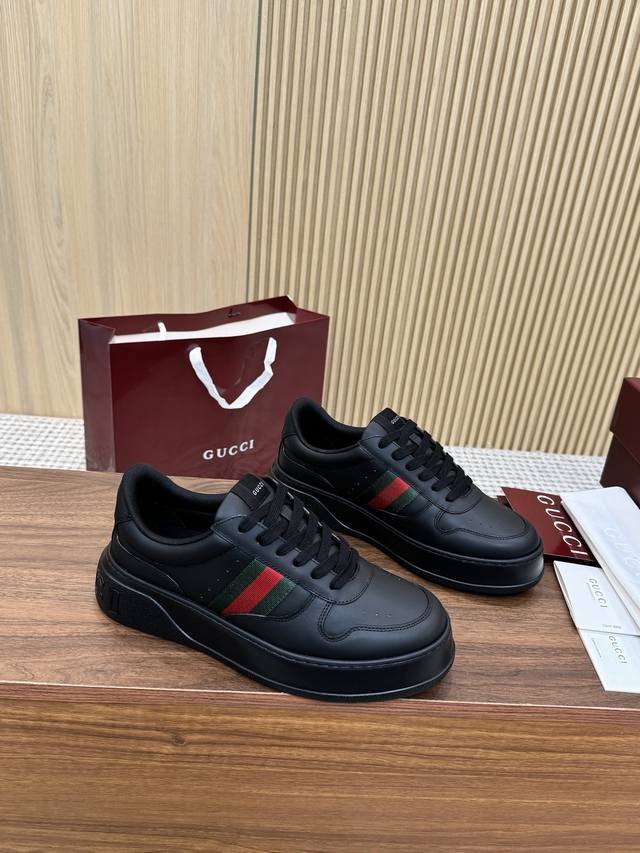Gucc*新款厚底运动鞋 高版本 出厂 Ddd 面料:对版粒面牛皮 Ddd 内里:丝质网布 Ddd 大底:橡胶发泡 Ddd Size:35 44 45 46 定做 DDD