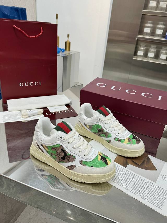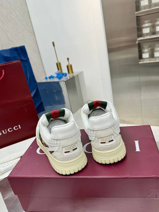 Gucci古驰 最新爆款高低帮做旧情侣运动鞋系列出货 Ddd 原版购入开发 做货,这款高低帮运动鞋采用篮球风格廓形设计,巧妙融入镂空拼片和做旧效果,尽显别样匠心。匠心融蕴互扣式双G造型配件和Gucci字样等品牌标识细节,低调致敬品牌设计传承。 DDD 面料:原版定制进口头层牛皮 Ddd 内里:吸汗防臭毛巾里 Ddd 鞋底:原版开模Tpu鞋底 Ddd 底厚: 3Cm Ddd Size: 女36-40 男39-46 35女41 男38 46 定做 Ddd DDD