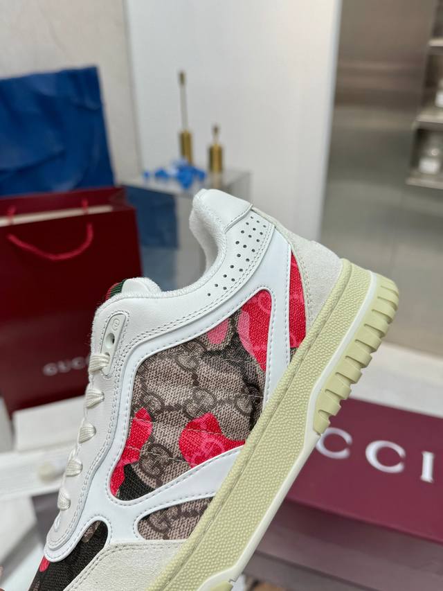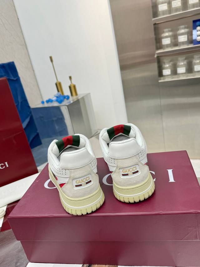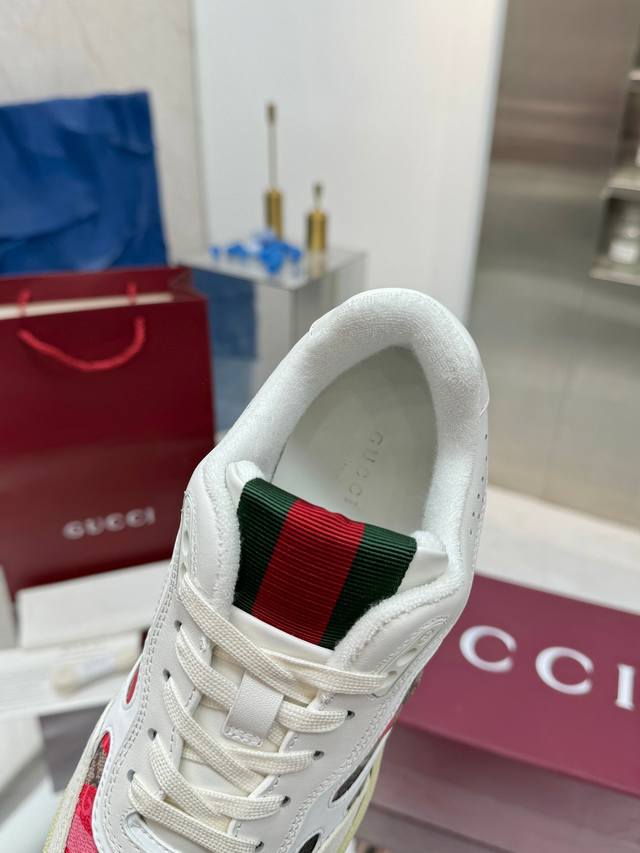 Gucci古驰 最新爆款高低帮做旧情侣运动鞋系列出货 原版购入开发 做货,这款高低帮运动鞋采用篮球风格廓形设计,巧妙融入镂空拼片和做旧效果,尽显别样匠心。匠心融