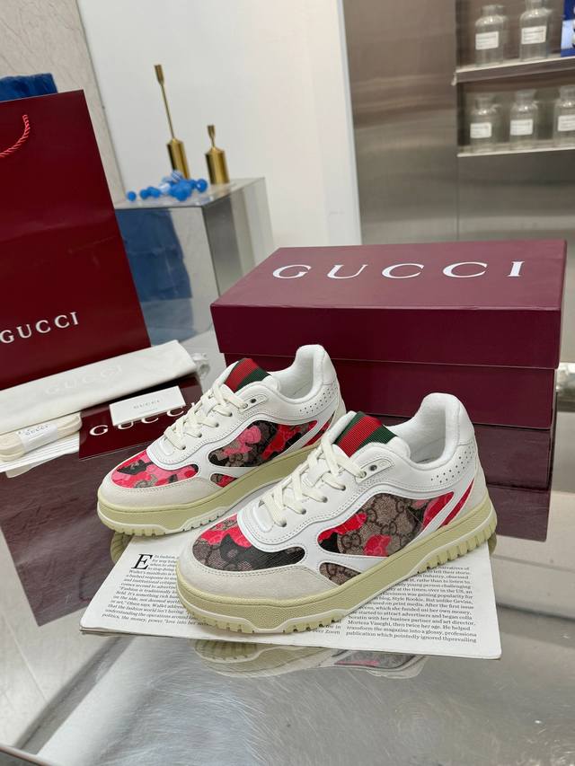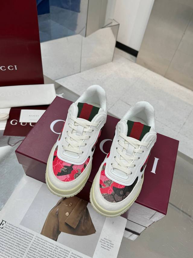 / Gucci古驰 最新爆款高低帮做旧情侣运动鞋系列出货 原版购入开发 做货,这款高低帮运动鞋采用篮球风格廓形设计,巧妙融入镂空拼片和做旧效果,尽显别样匠心。匠心融