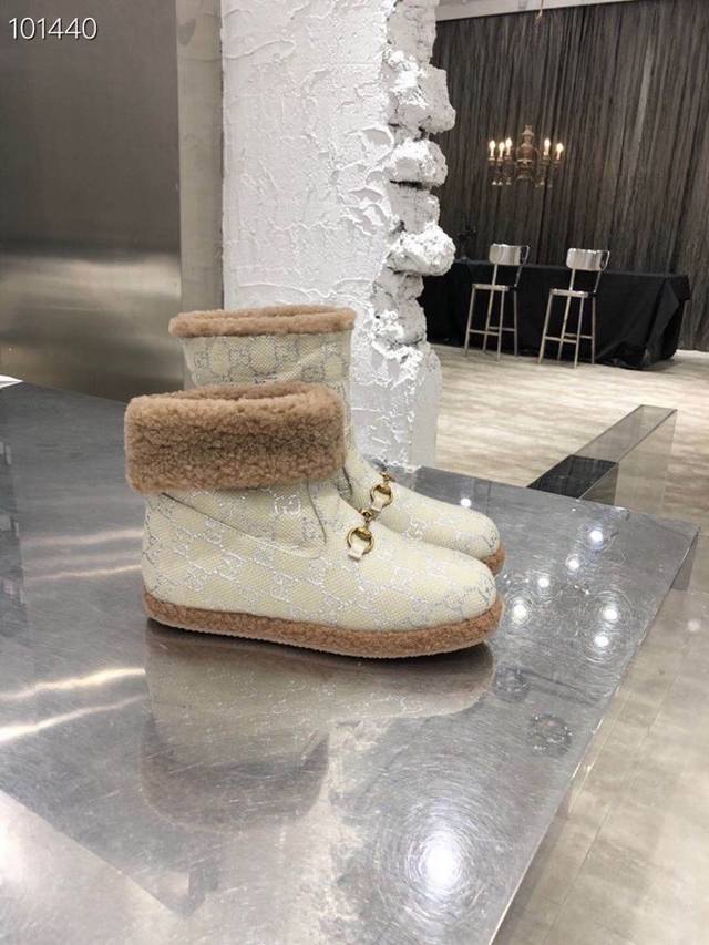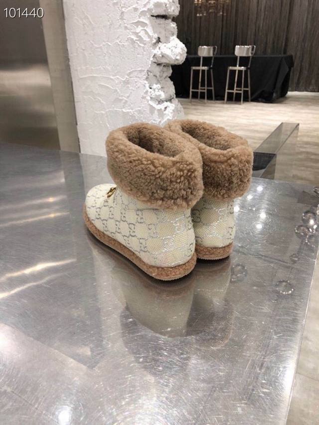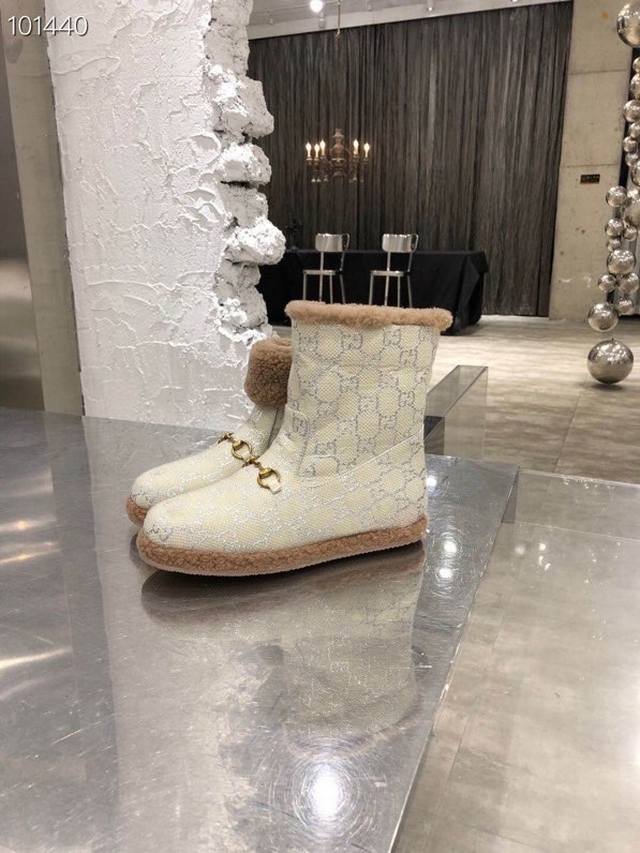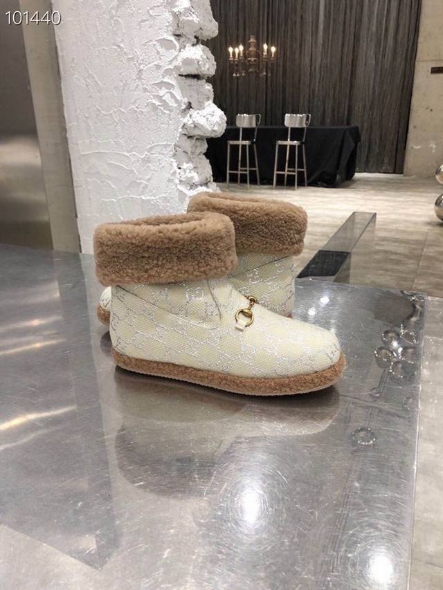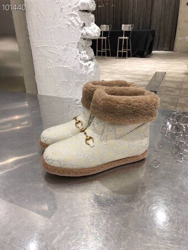Gucci官网新款 女士 秋冬羊毛靴 毛呢面配五金澳洲羊皮毛一体泰迪卷羊毛内里 舒适保暖吸汗 ,4色可选,码数 35#-41#