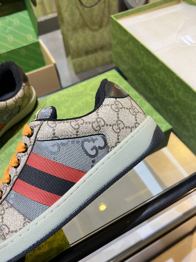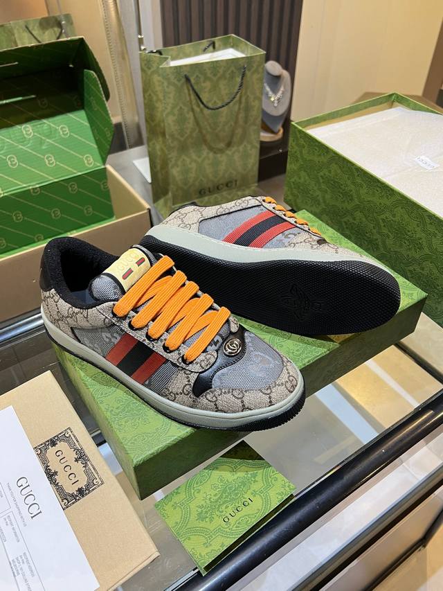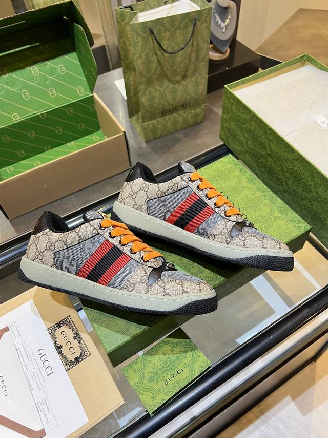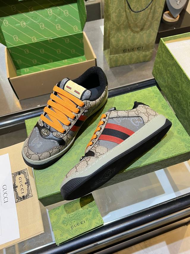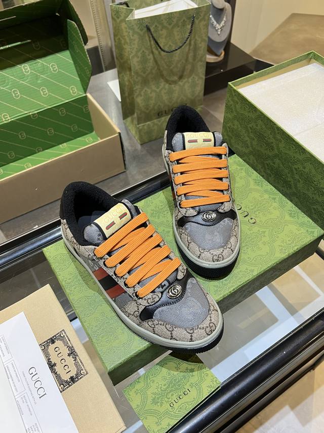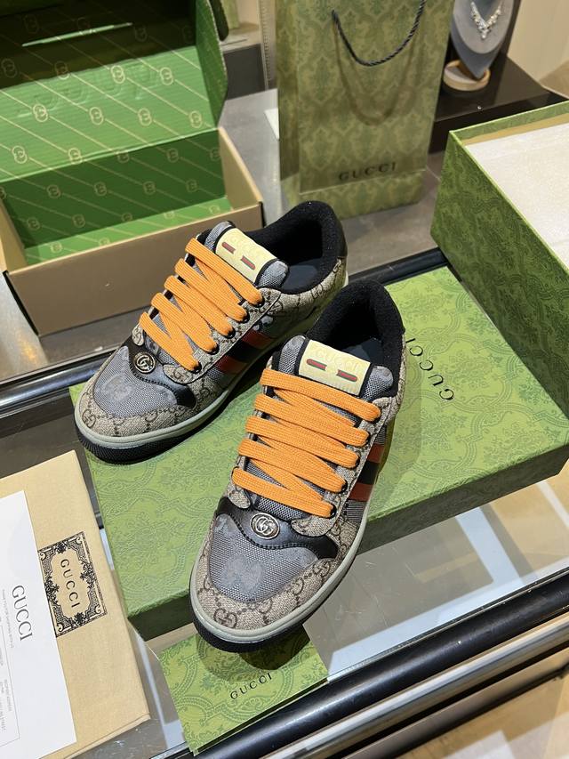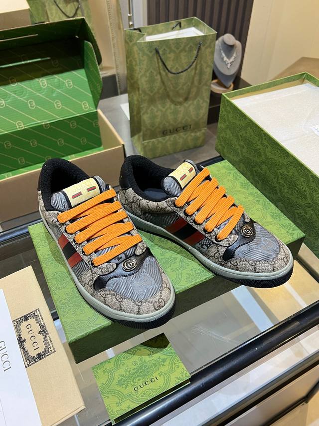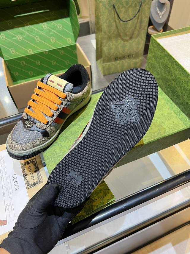 Gucci脏脏鞋 顶级工厂P品质,专柜一比一无可挑剔,穿上脚舒适度燃到爆表 复古做旧元素,鞋舌水洗复古标,金属双Glogo相识度99%,满面的Gucci元素;毛