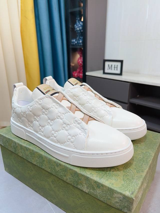 / Gucci 古奇 男鞋高端品牌,最新時尚休闲男鞋,潮流百搭之款,轻松运动风,鞋面意大利进口头层牛皮 真皮内里 加超精细做工。原版个性时尚橡胶耐磨大底,上脚轻巧舒