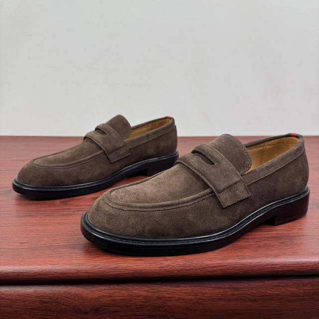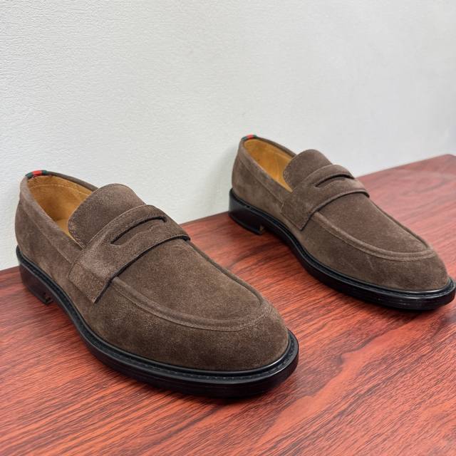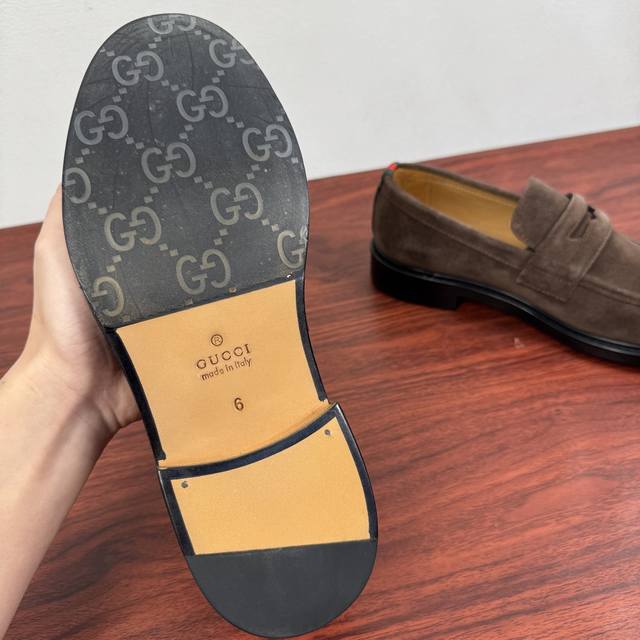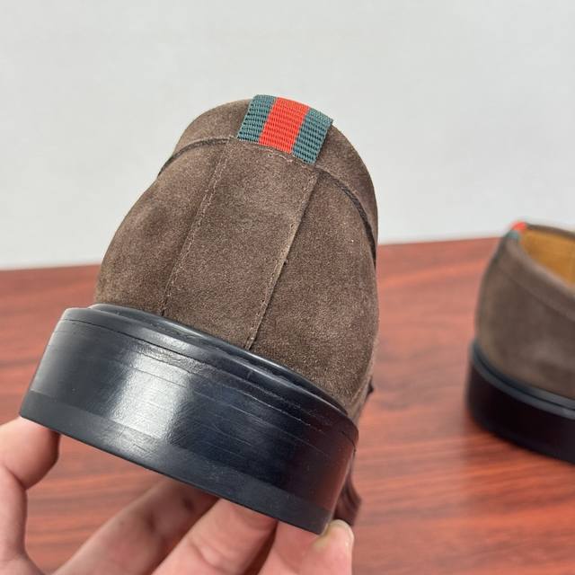 Gucci 古驰 新款男士纯色皮革乐福鞋! Ddd 这款优雅乐福鞋采用柔软绒面牛皮革制成 两重风格可选。鞋面搭配真皮扣带装饰 增添低调而别致的标识图案元素 简约风格设计 经典欧美楦型 标配风格 后跟有红绿织带装饰点缀品牌风格细节。甄选优质皮料 质感做工材质看细节 本染小牛皮内里 皮孔均匀细腻,柔软舒适 加厚真皮大底,后跟复合橡胶底片,上脚舒适度极好,且耐磨防滑,轻奢首选佳品,上脚百搭,配全套包装! Ddd 尺码:39-40-41-42-43-44皮鞋尺码 可定制38.45.46 Ddd 货号:812168