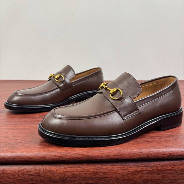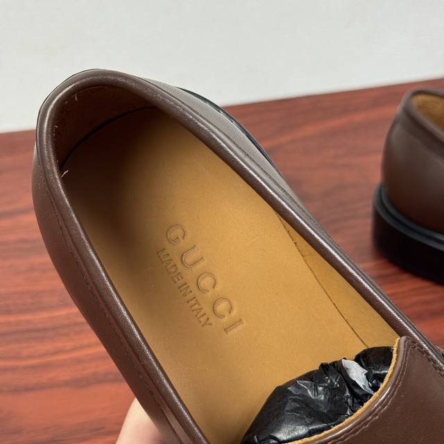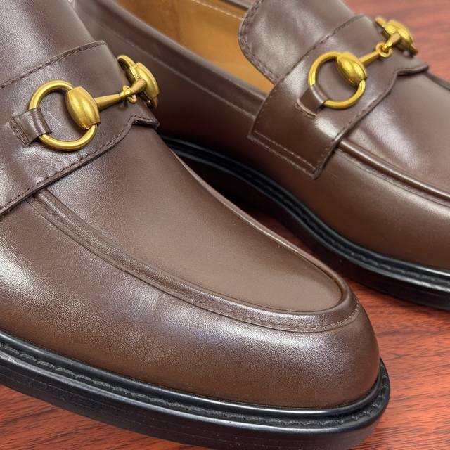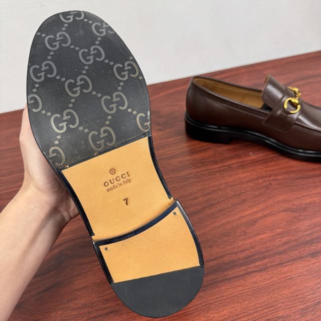Gucci 古驰 新款饰马衔扣男士乐福鞋! Ddd 这款饰马衔扣经典乐福鞋彰显经典优雅格调,致意品牌深厚传承。精心打造的皮革鞋底与半圆形鞋头,为整款设计注入焕新魅力。标志性配件与金属扣饰面相得益彰,经典宽松版型,纯色皮革突出简约而古朴气质 甄选优质皮革 皮料材质看细节 质感亮丽 皮料韧性极好 柔软舒适耐穿 本染小牛皮内里 皮孔均匀细腻,柔软舒适 加厚真皮大底,后跟复合橡胶底片,上脚舒适度极好,且耐磨防滑,轻奢首选佳品,上脚百搭,配全套包装! Ddd 尺码:39-40-41-42-43-44皮鞋尺码 可定制