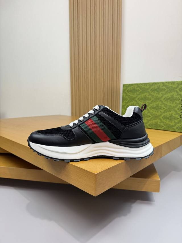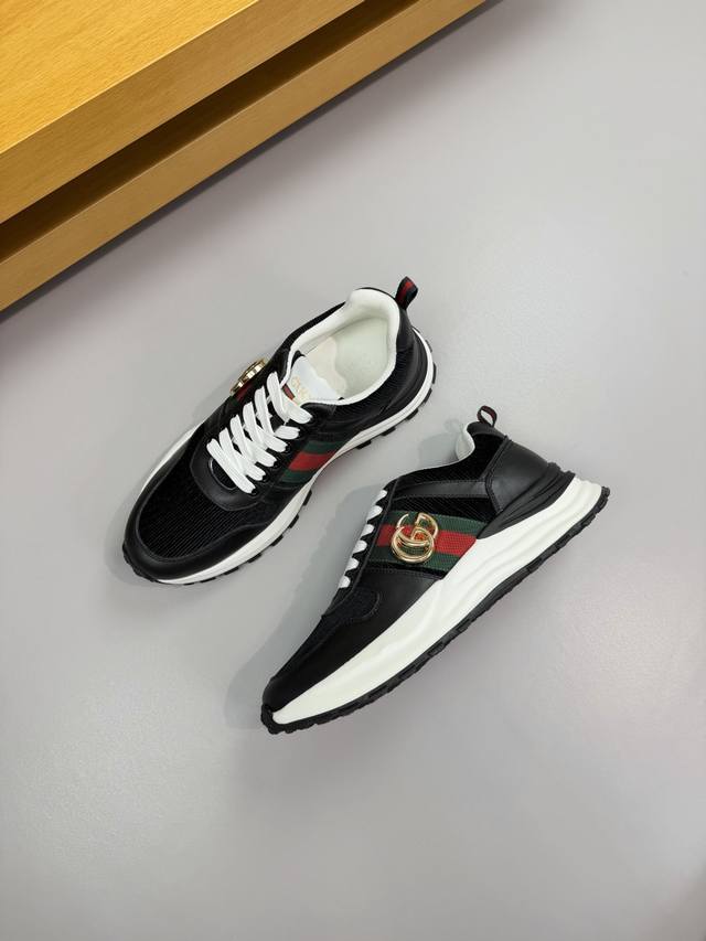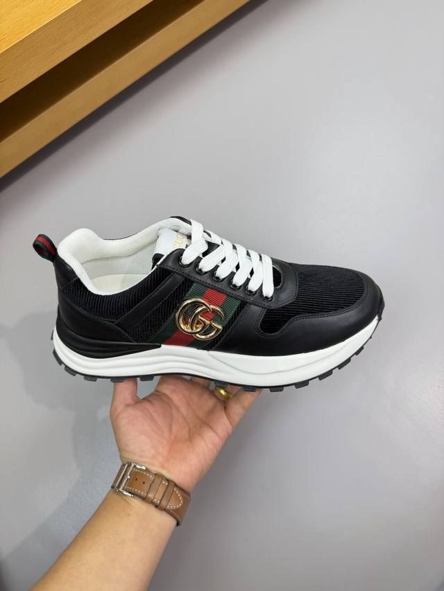 新款: 厂价 古奇Gucci* 最新爆款休闲鞋,顶端品牌 奢侈~代购,顶级~质量。 鞋面選用进口透气牛皮搭配布料材质透气羊皮垫脚...
