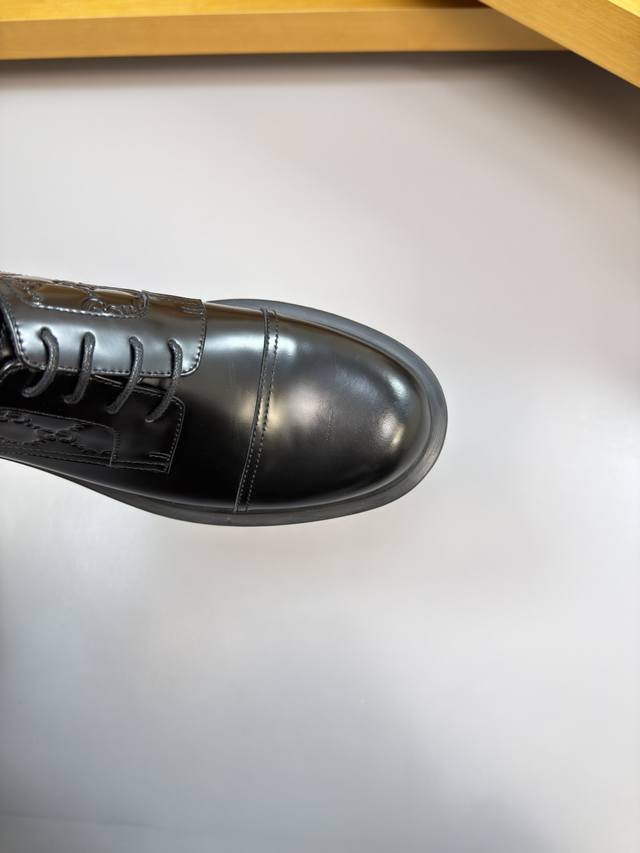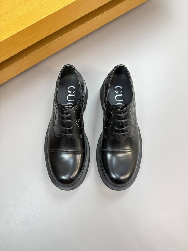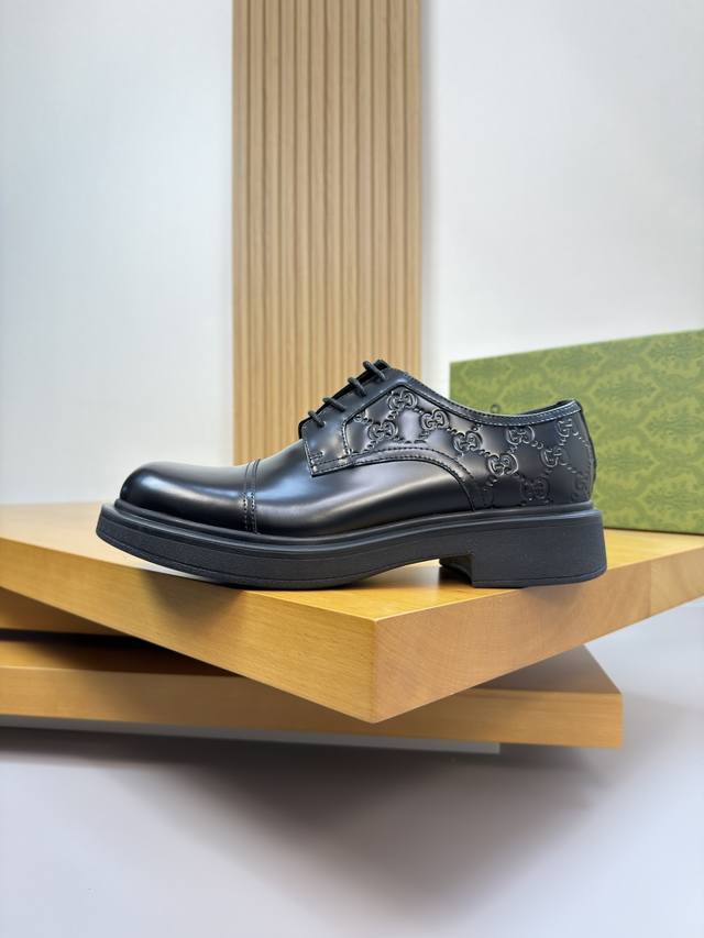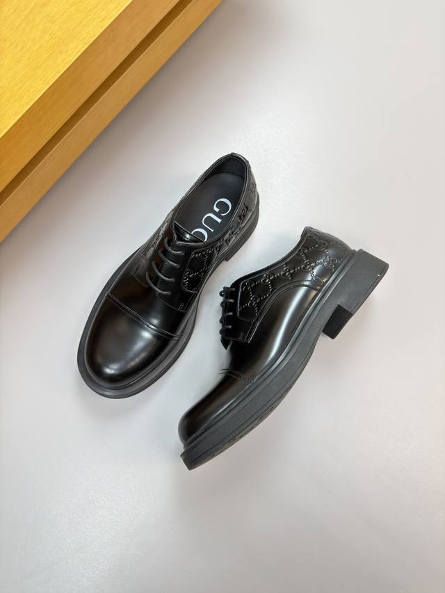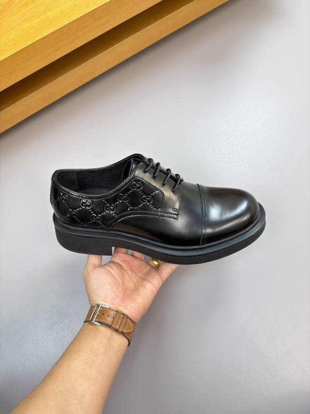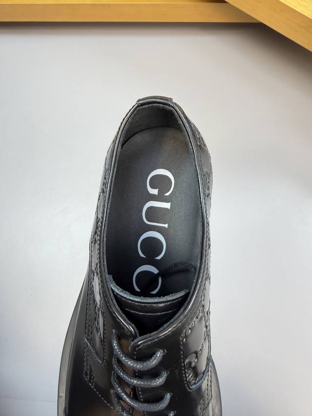 Gucci 古驰 Ddd -高端品质 原单 正装皮鞋 Ddd -鞋面:开边珠小牛皮、鞋丹空压品牌图腾、完美拼接 Ddd -内里:水染牛皮 Ddd -大底:超轻Tpr 橡胶;成型大底 Ddd -超高品控 做工精细:凸显 高端 贵气 档次 Ddd -Size :39-44 38,45,46,可订做 H0122 DDD