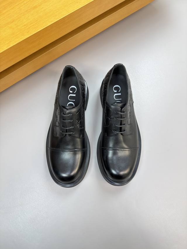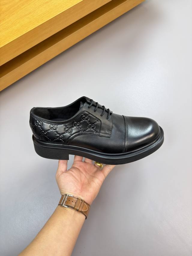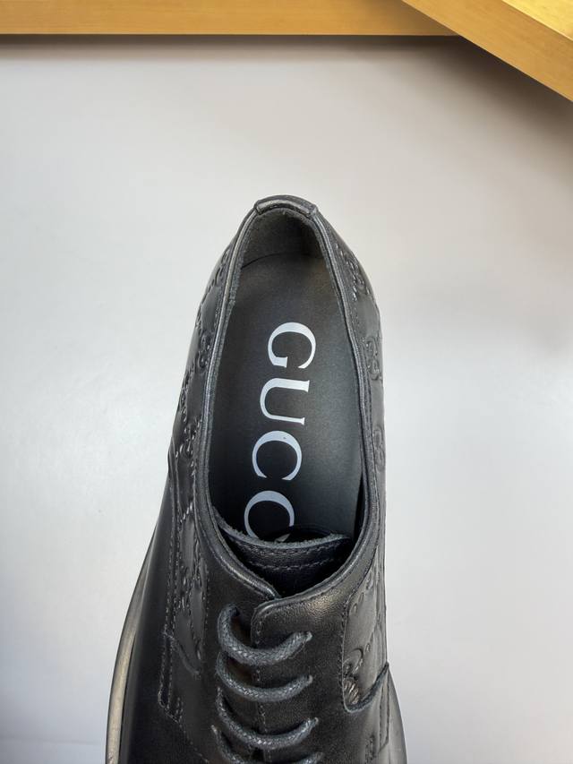 Gucci 古驰 Ddd -高端品质 原单 正装皮鞋 Ddd -鞋面:纳帕小牛皮、鞋丹空压品牌图腾、完美拼接 Ddd -内里:水染牛皮 Ddd -大底:超轻Tpr 橡胶;成型大底 Ddd -超高品控 做工精细:凸显 高端 贵气 档次 Ddd -Size :39-44 38,45,46,可订做 H0122 DDD