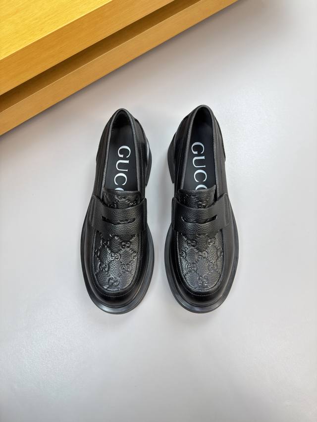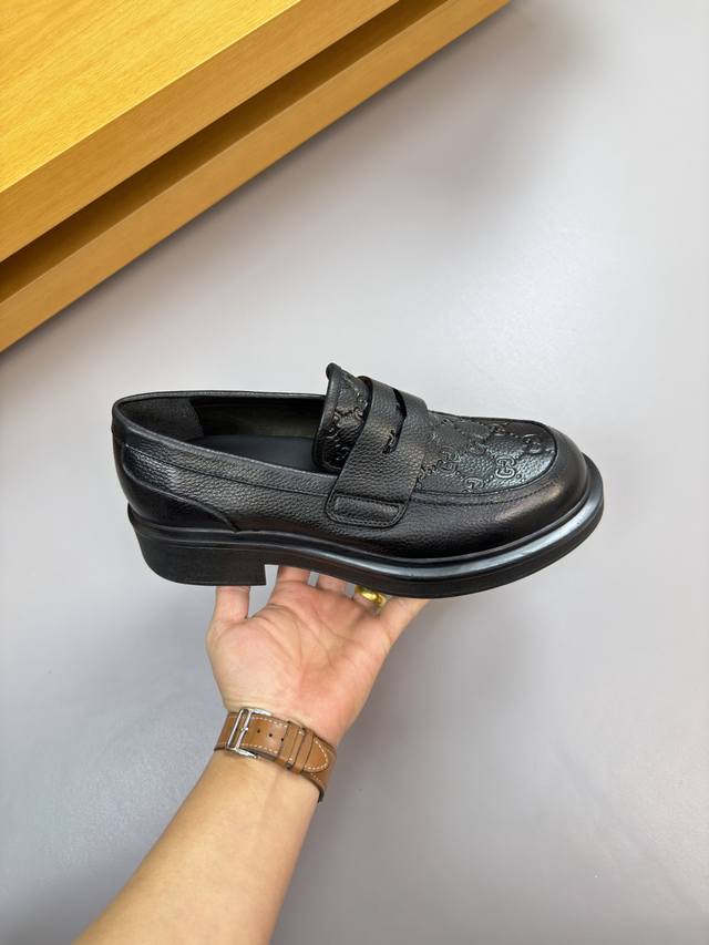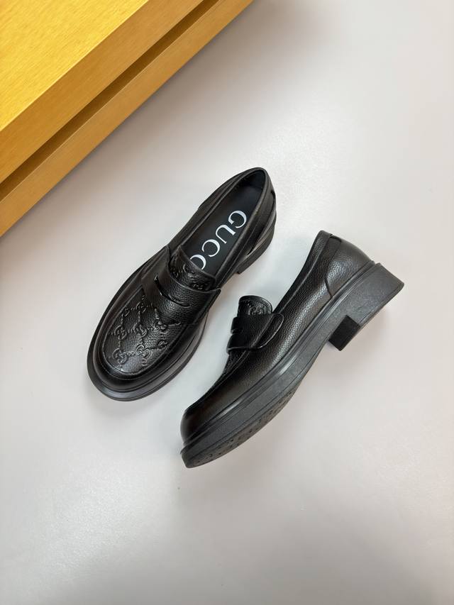 Gucci 古驰 Ddd -高端品质 原单 正装皮鞋 Ddd -鞋面:荔纹小牛皮、鞋丹空压品牌图腾、品牌横担装饰 Ddd -内里:水染牛皮 Ddd -大底:超轻Tpr 橡胶;成型大底 Ddd -超高品控 做工精细:凸显 高端 贵气 档次 Ddd -Size :39-44 38,45,46,可订做 H0122 DDD