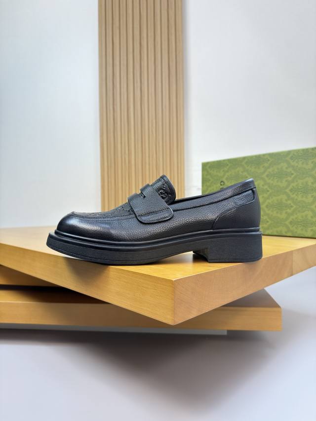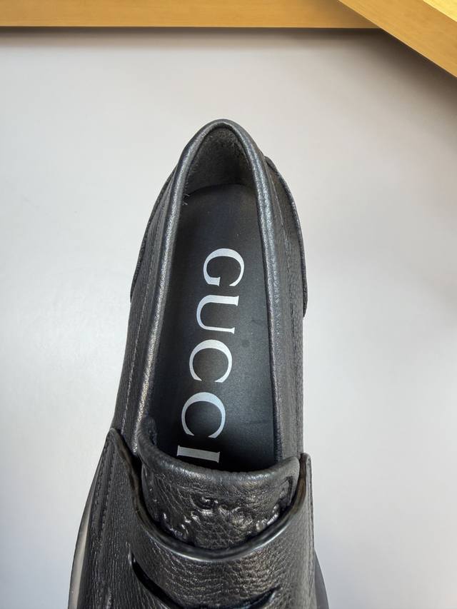 / Gucci 古驰 -高端品质 原单 正装皮鞋 -鞋面:荔纹小牛皮、鞋丹空压品牌图腾、品牌横担装饰 -内里:水染牛皮 -大底:超轻Tpr 橡胶;成型大底 -超高品