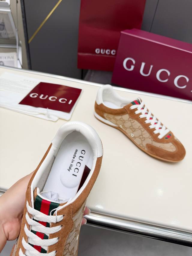 Gucci 新款情侣Shift四季运动鞋 轻盈设计焕新诠释运动风尚,利落廓形更添自在本色,点缀条纹织带,行动间彰显精致质感,鞋型设计简约复古,上脚轻便百搭,无论是通勤还是日常出街都能轻松驾驭,女35-40 男40-45 DDD