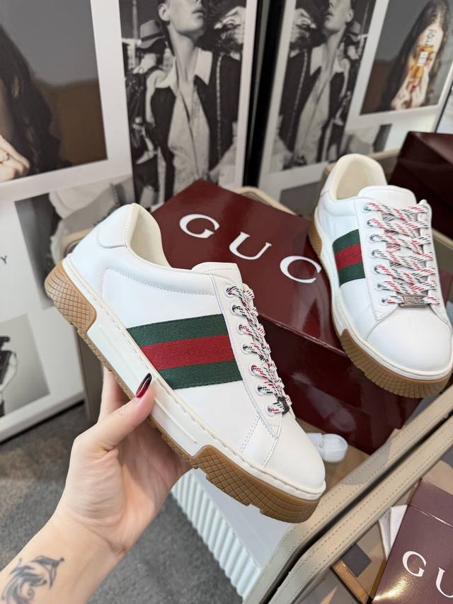 主推款 Gucci 古奇潮鞋 鞋面意大利进口头层顶级牛皮+内里头层羊里材质而成 潮男年轻人必备 欧美时尚风格...