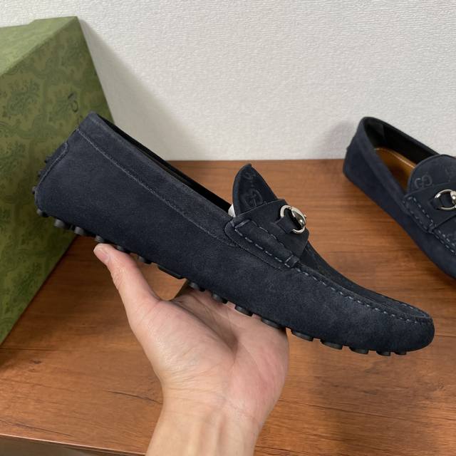 历经时间洗礼的马衔扣元素如今已成为品牌经典元素,旨在致敬品牌马术本源。在这款牛皮革驾车鞋上,该符号元素以耀眼之姿匠心呈现。采用小牛皮和绒面牛皮革打造,鞋面饰以双G压花标识,同材质饰带搭配银色调金属马衔扣,经典橡胶豆豆颗粒鞋底,柔软舒适透气,休闲百搭!配全套原包装!