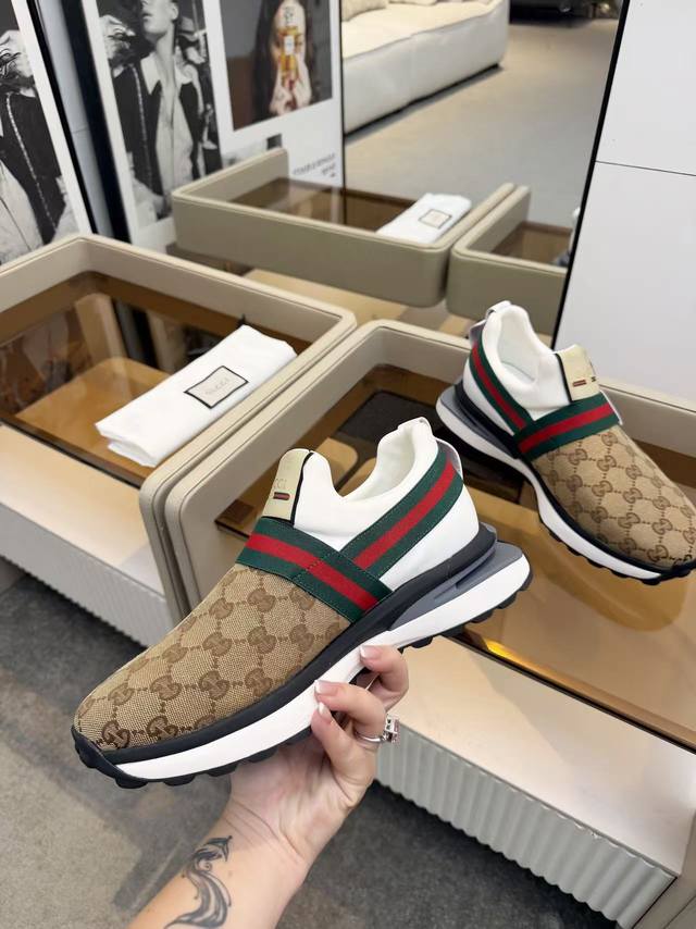 Gucci 男款 新款休闲运动鞋 标志性字母图案 搭配经典红绿织带,致敬品牌的不朽传承,低调又奢华,这个秋冬时尚搭配单品 男码:39-45 DDD