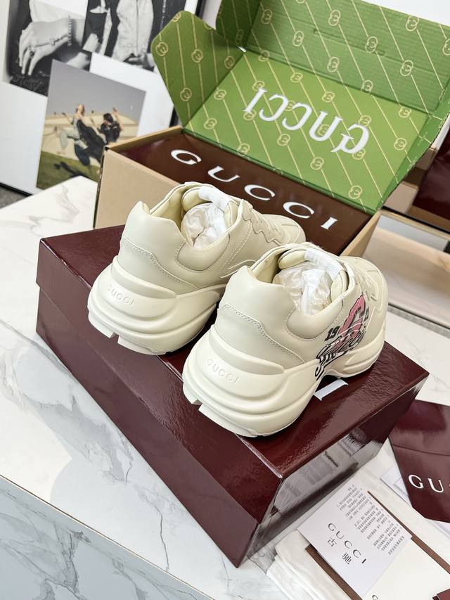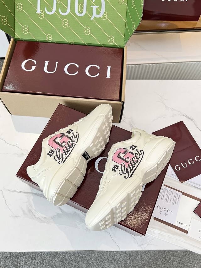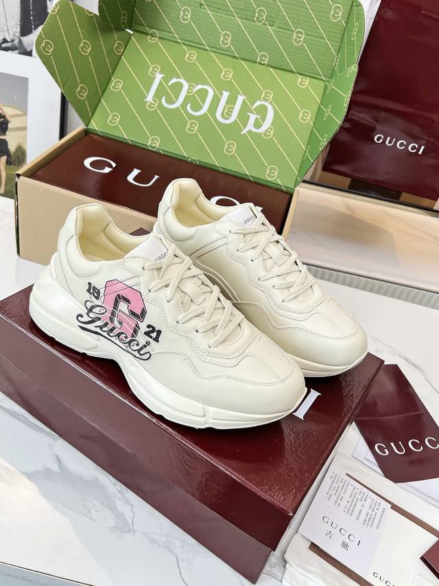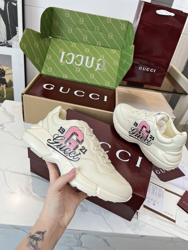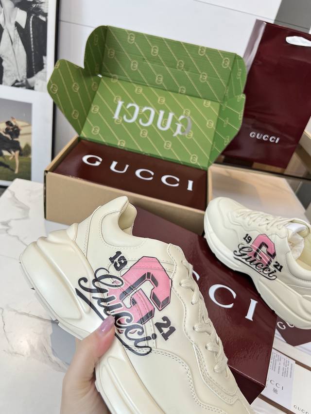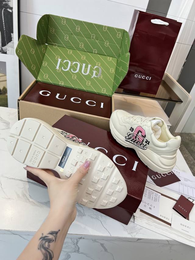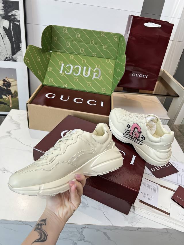Gucci 老爹鞋,踩出你的奢华宣言 厌倦了千篇一律?渴望在人群中脱颖而出?Gucci 老爹鞋;正是你衣橱里缺失的那件风格利器! 经典重塑,复古回潮:汲取 年代复古灵魂,注入 Gucci 当代美学基因。标志性的厚实廓形、大胆线条与层次感设计,瞬间唤醒你的复古潮流Dna,成为街头绝对的视觉焦点。 双G荣耀,无处不在:无处不在的经典双G标识,或醒目点缀,或低调融入鞋身细节。这不仅是品牌象征,更是你不凡品味与身份的无声宣告。穿上它,每一步都自带光环。 奢华材质,匠心工艺:Gucci 从不妥协于品质。甄顶级皮革、