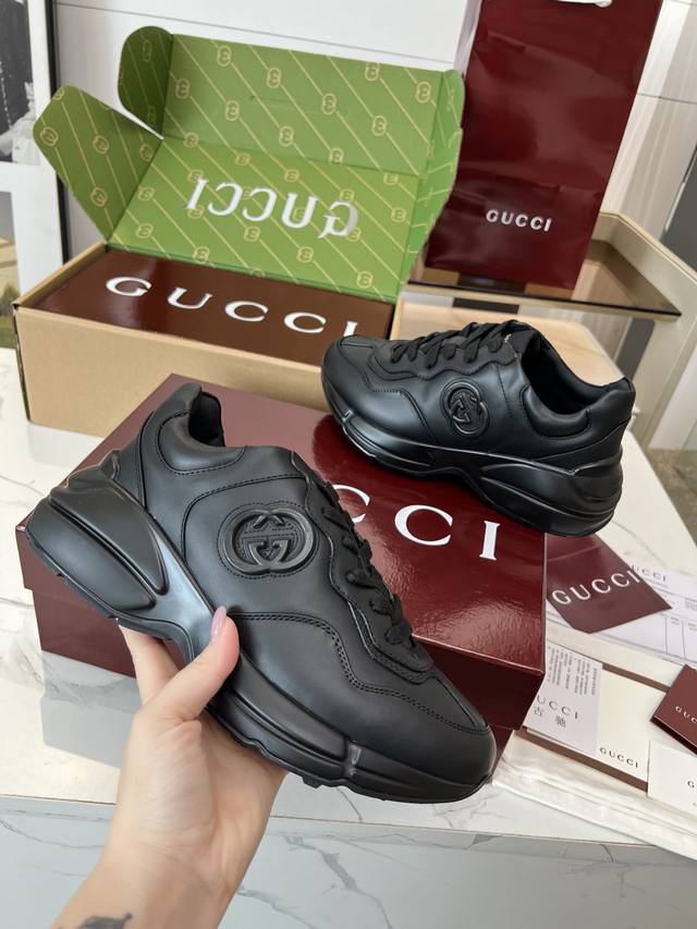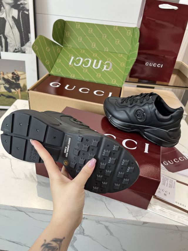 Gucci 老爹鞋,踩出你的奢华宣言 厌倦了千篇一律?渴望在人群中脱颖而出?Gucci 老爹鞋;正是你衣橱里缺失的那件风格利器! 经典重塑,复古回潮:汲取 年代复古灵魂,注入 Gucci 当代美学基因。标志性的厚实廓形、大胆线条与层次感设计,瞬间唤醒你的复古潮流Dna,成为街头绝对的视觉焦点。 双G荣耀,无处不在:无处不在的经典双G标识,或醒目点缀,或低调融入鞋身细节。这不仅是品牌象征,更是你不凡品味与身份的无声宣告。穿上它,每一步都自带光环。 奢华材质,匠心工艺:Gucci 从不妥协于品质。甄顶级皮革、