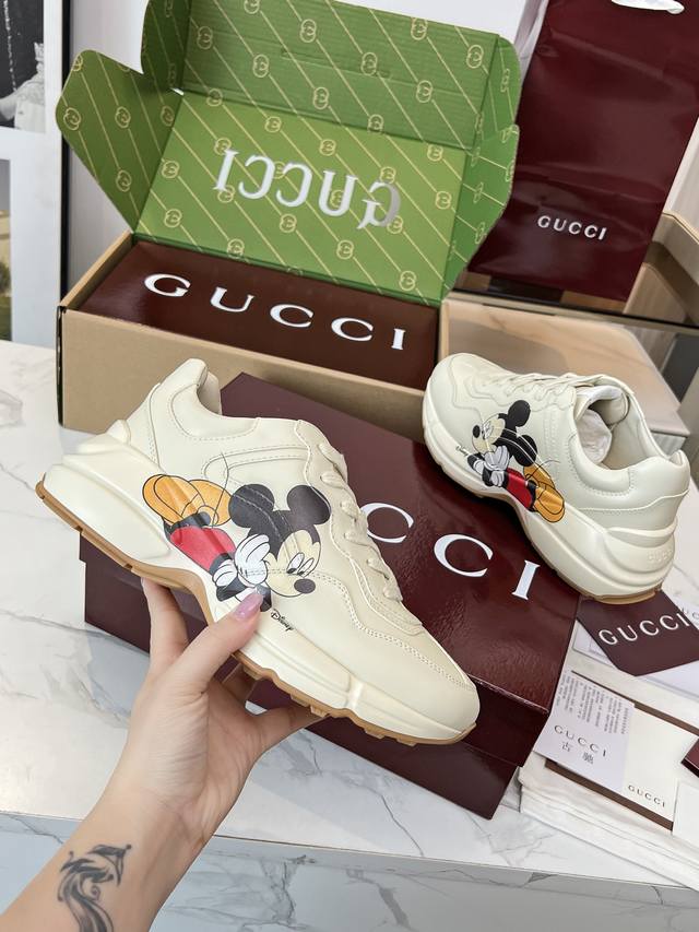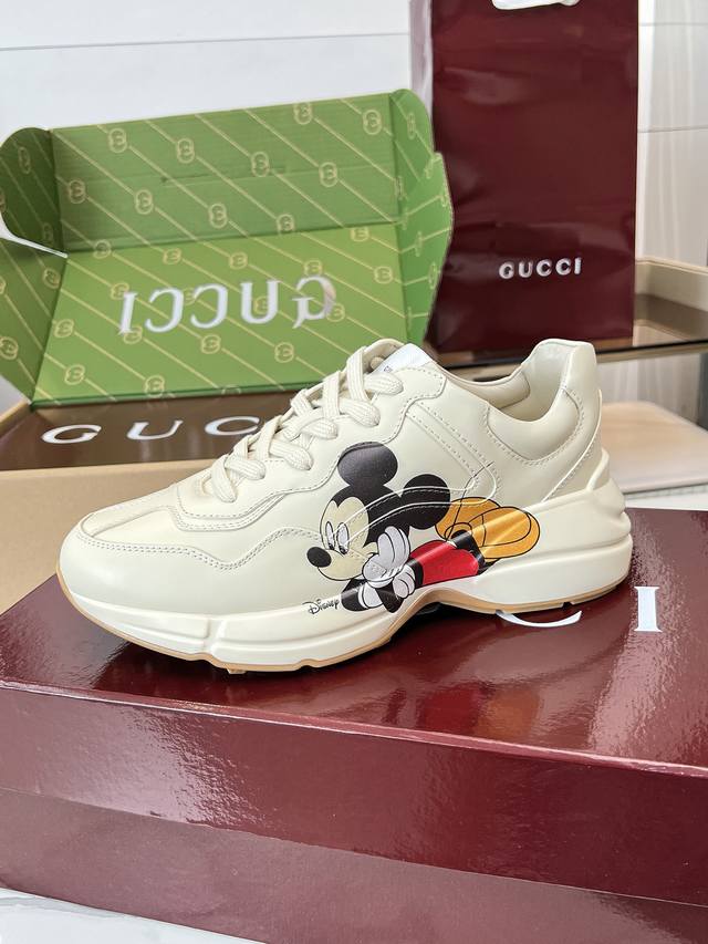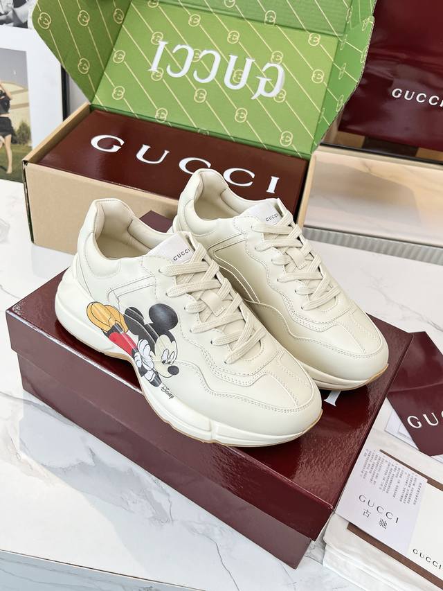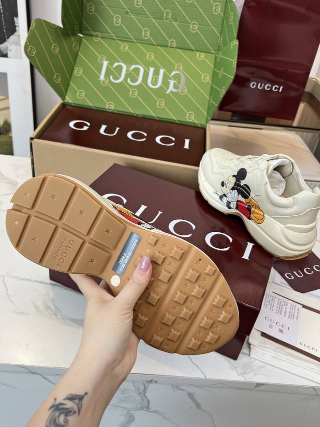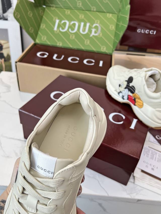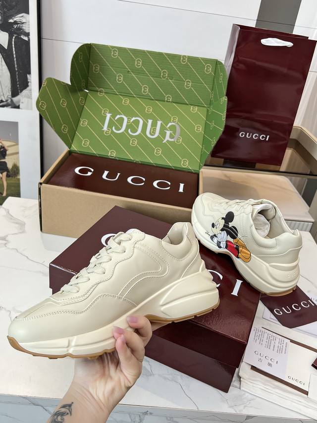 Gucci 老爹鞋,踩出你的奢华宣言 厌倦了千篇一律?渴望在人群中脱颖而出?Gucci 老爹鞋;正是你衣橱里缺失的那件风格利器! 经典重塑,复古回潮:汲取 年代复古灵魂,注入 Gucci 当代美学基因。标志性的厚实廓形、大胆线条与层次感设计,瞬间唤醒你的复古潮流Dna,成为街头绝对的视觉焦点。 双G荣耀,无处不在:无处不在的经典双G标识,或醒目点缀,或低调融入鞋身细节。这不仅是品牌象征,更是你不凡品味与身份的无声宣告。穿上它,每一步都自带光环。 奢华材质,匠心工艺:Gucci 从不妥协于品质。甄顶级皮革、