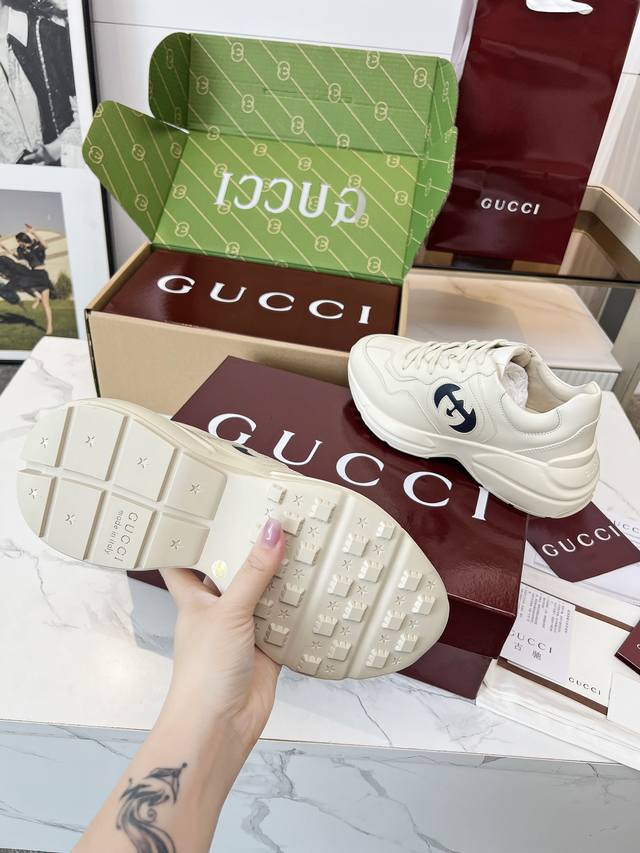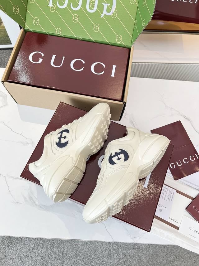 Gucci 老爹鞋,踩出你的奢华宣言 厌倦了千篇一律?渴望在人群中脱颖而出?Gucci 老爹鞋;正是你衣橱里缺失的那件风格利器! 经典重塑,复古回潮:汲取 年代复古灵魂,注入 Gucci 当代美学基因。标志性的厚实廓形、大胆线条与层次感设计,瞬间唤醒你的复古潮流Dna,成为街头绝对的视觉焦点。 双G荣耀,无处不在:无处不在的经典双G标识,或醒目点缀,或低调融入鞋身细节。这不仅是品牌象征,更是你不凡品味与身份的无声宣告。穿上它,每一步都自带光环。 奢华材质,匠心工艺:Gucci 从不妥协于品质。甄顶级皮革、