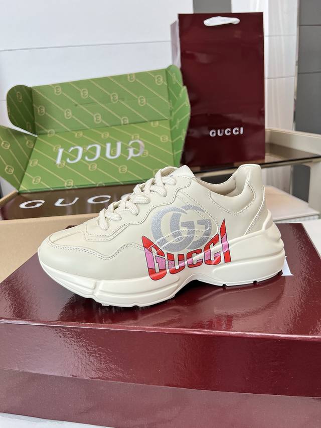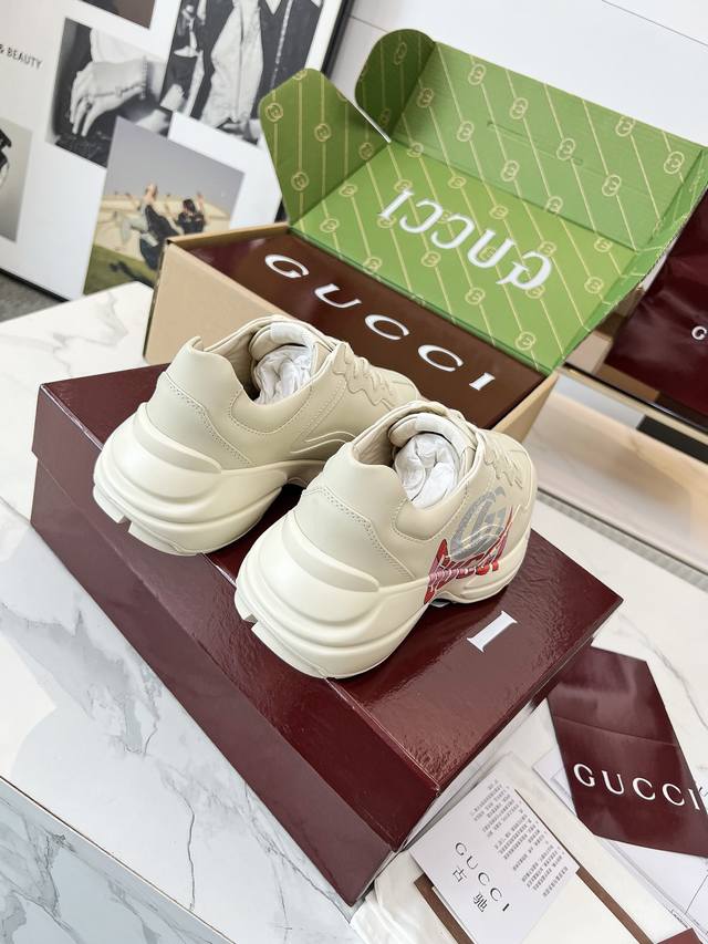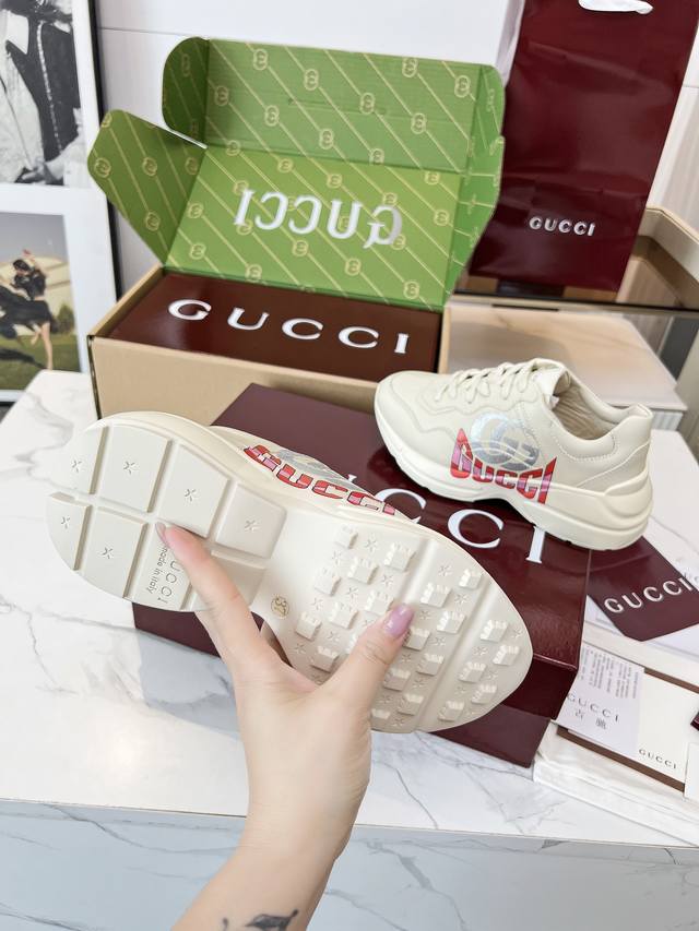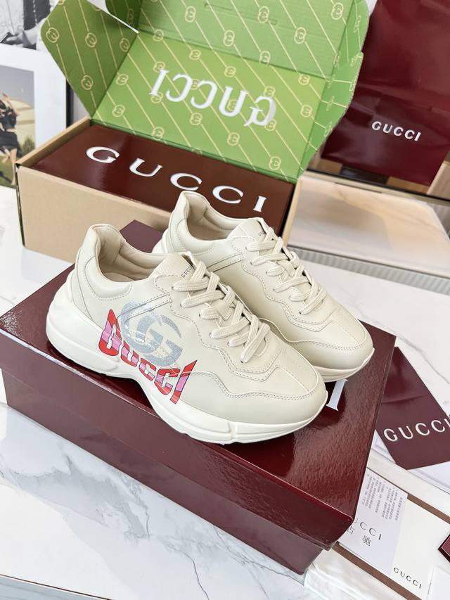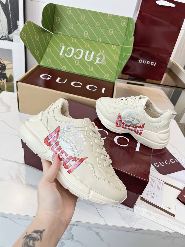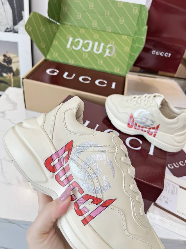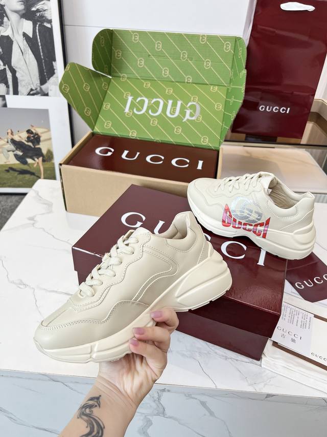 Gucci 老爹鞋,踩出你的奢华宣言 厌倦了千篇一律?渴望在人群中脱颖而出?Gucci 老爹鞋;正是你衣橱里缺失的那件风格利器! 经典重塑,复古回潮:汲取 年代复古灵魂,注入 Gucci 当代美学基因。标志性的厚实廓形、大胆线条与层次感设计,瞬间唤醒你的复古潮流Dna,成为街头绝对的视觉焦点。 双G荣耀,无处不在:无处不在的经典双G标识,或醒目点缀,或低调融入鞋身细节。这不仅是品牌象征,更是你不凡品味与身份的无声宣告。穿上它,每一步都自带光环。 奢华材质,匠心工艺:Gucci 从不妥协于品质。甄顶级皮革、